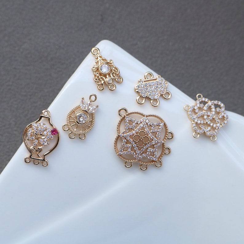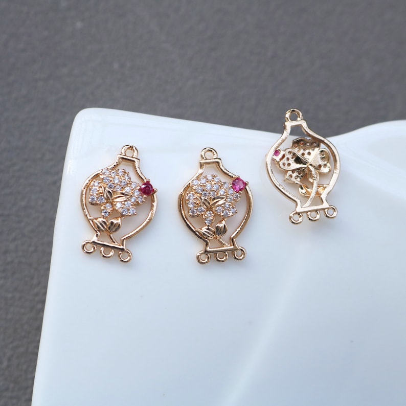 10pcs CZ Pave Charm, Zircon Branches Pendant, flower Branches Charm Connector, Jewelry Making,Material Craft Supplies