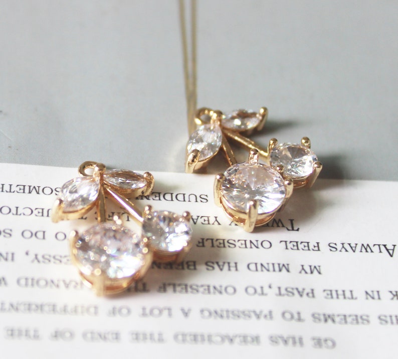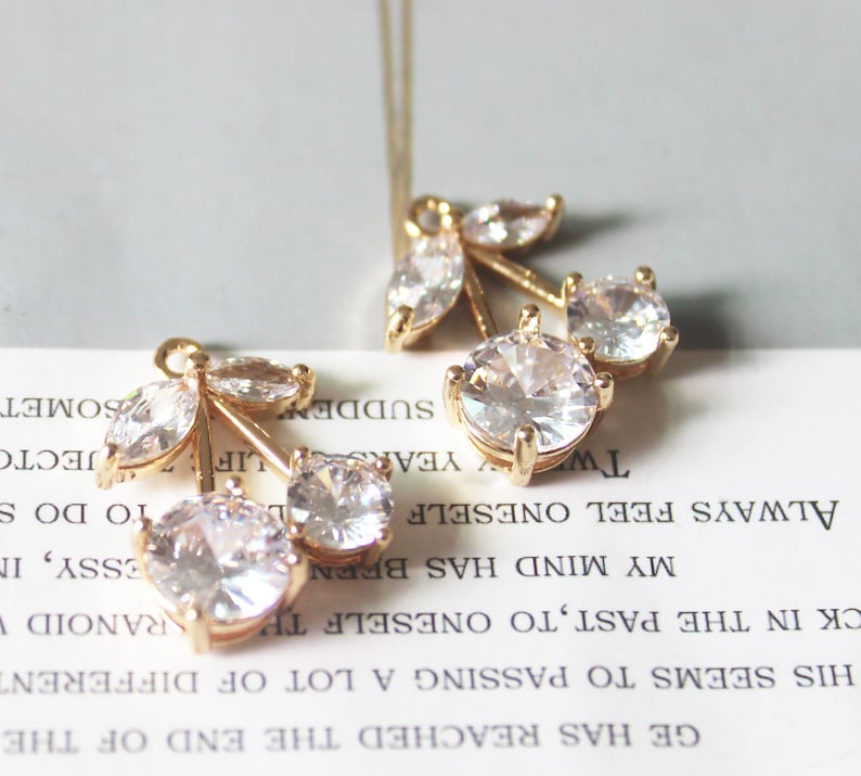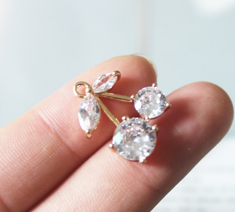 10pcs CZ Pave Cherry Charm, Zircon Cherry Pendant, fruit Charm, Food, Pave Charm, Gold Plated Over Brass