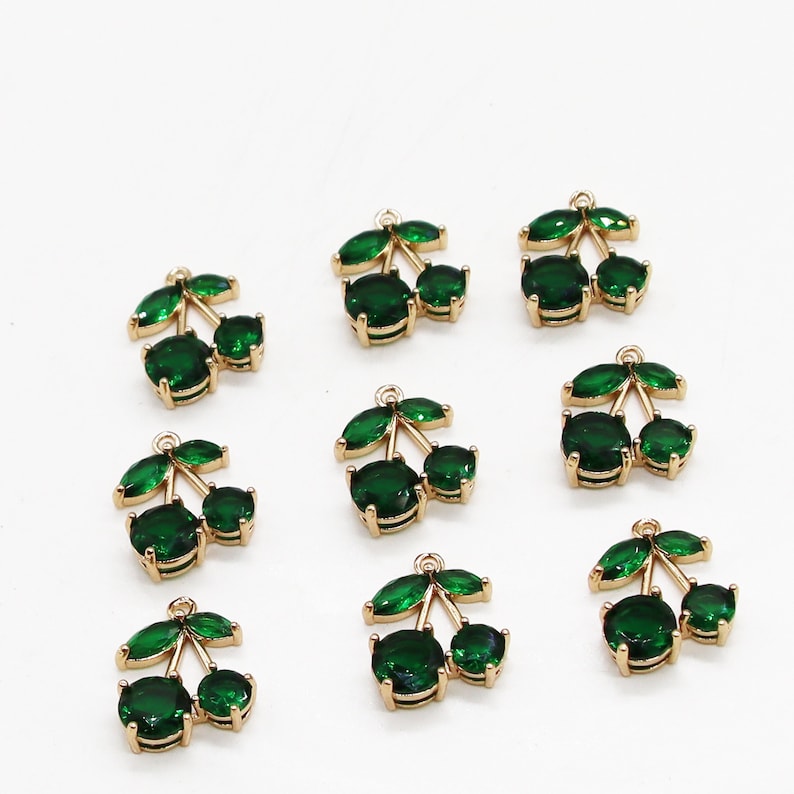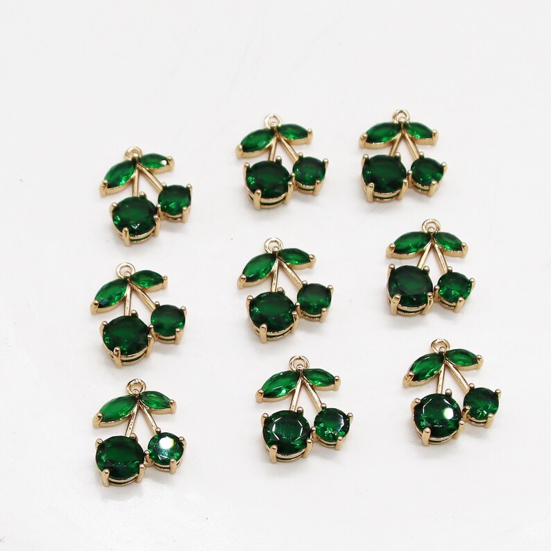 10pcs CZ Pave Cherry Charm, Zircon Cherry Pendant, fruit Charm, Food, Pave Charm, Gold Plated Over Brass
