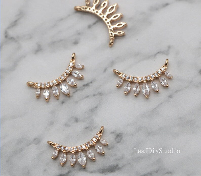 10pcs CZ Pave Crown 19X8mm Charm Pendant, Zircon Crown Connector, Jewelry Making, Material Craft Supplies