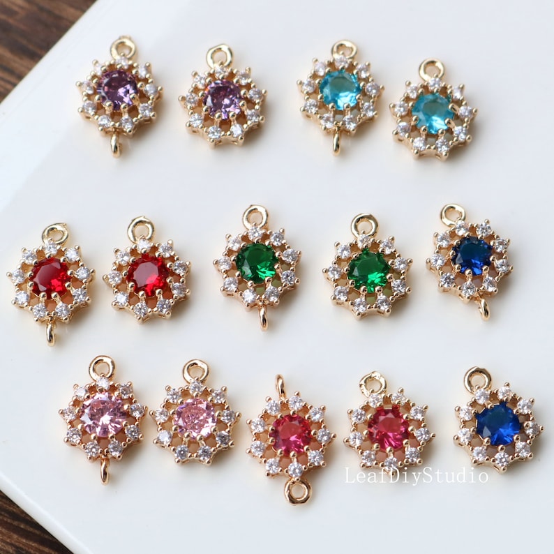 10pcs CZ Pave Diamond Connector charm, 11mm bracelet necklace pendant, 8 color pave charm,gold plated over brass