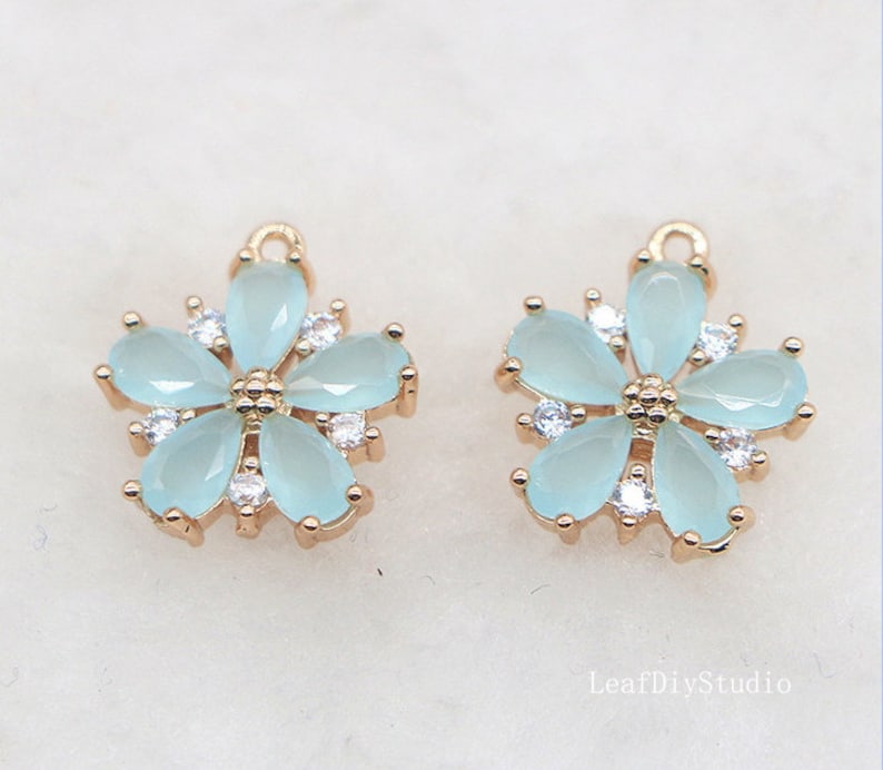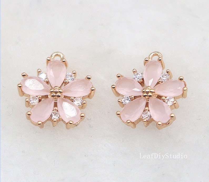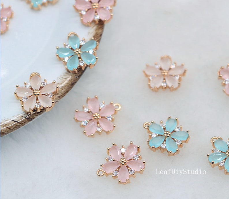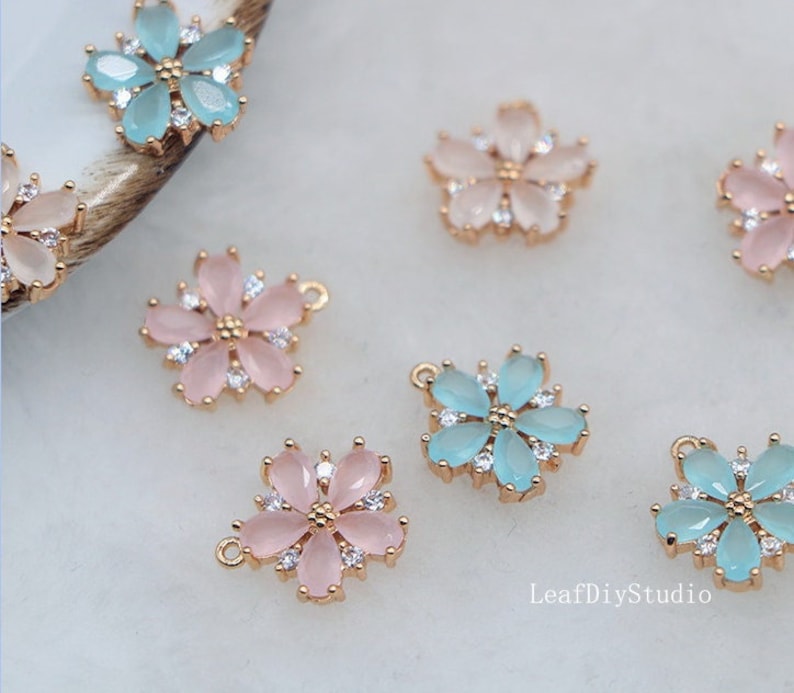 10pcs CZ Pave Five petal flower Charm, 11.5mm Zircon Pink, blue, white flowers Pendant , Jewelry Making, Zircon Material Craft Supplies