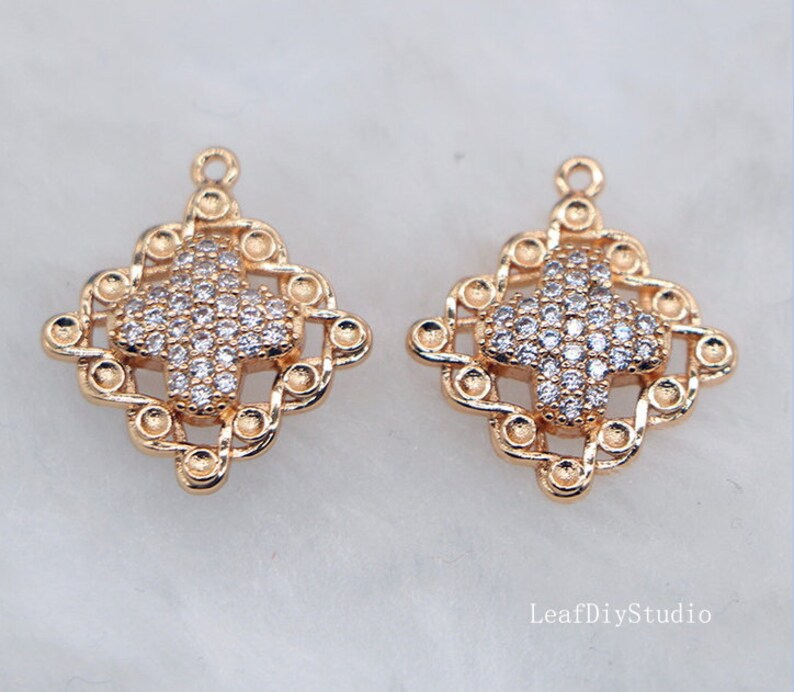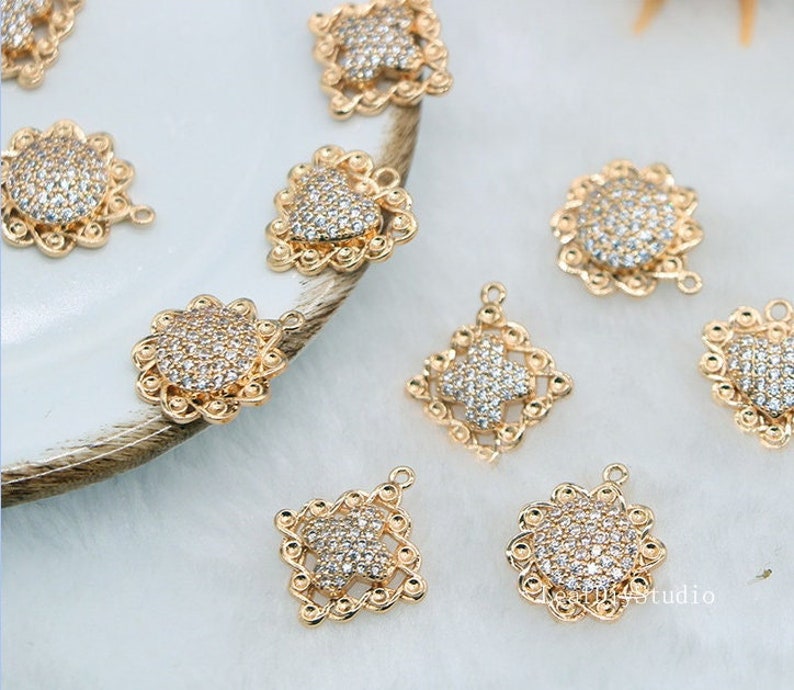 10pcs CZ Pave Five petal flower Charm, 6x9mm Zircon Small square Pendant, Jewelry Making, Zircon Material Craft Supplies