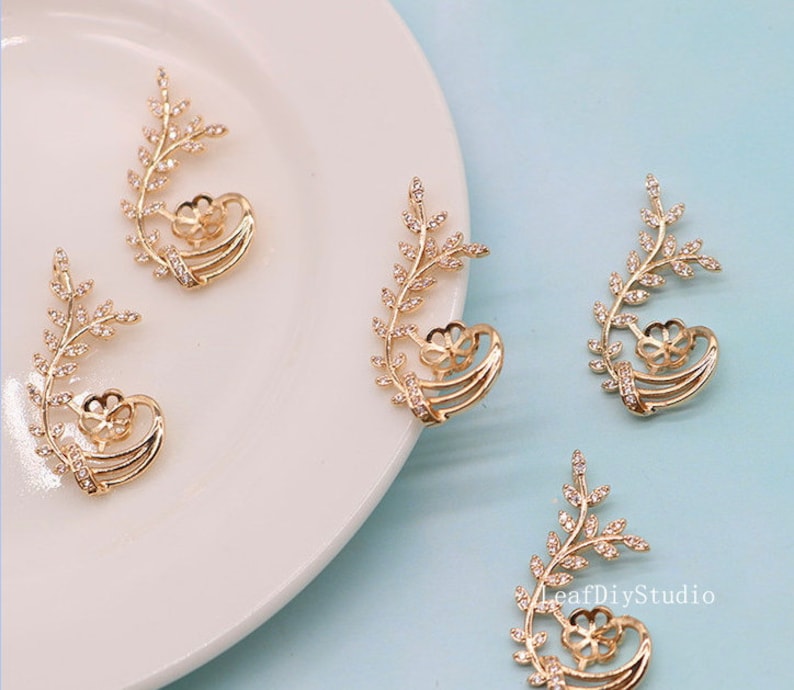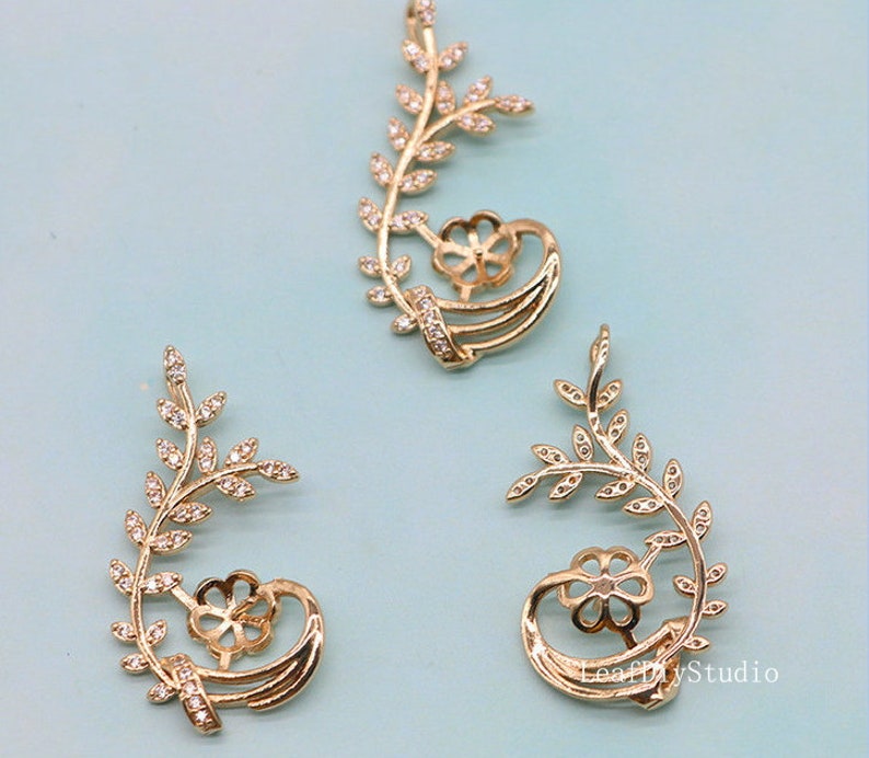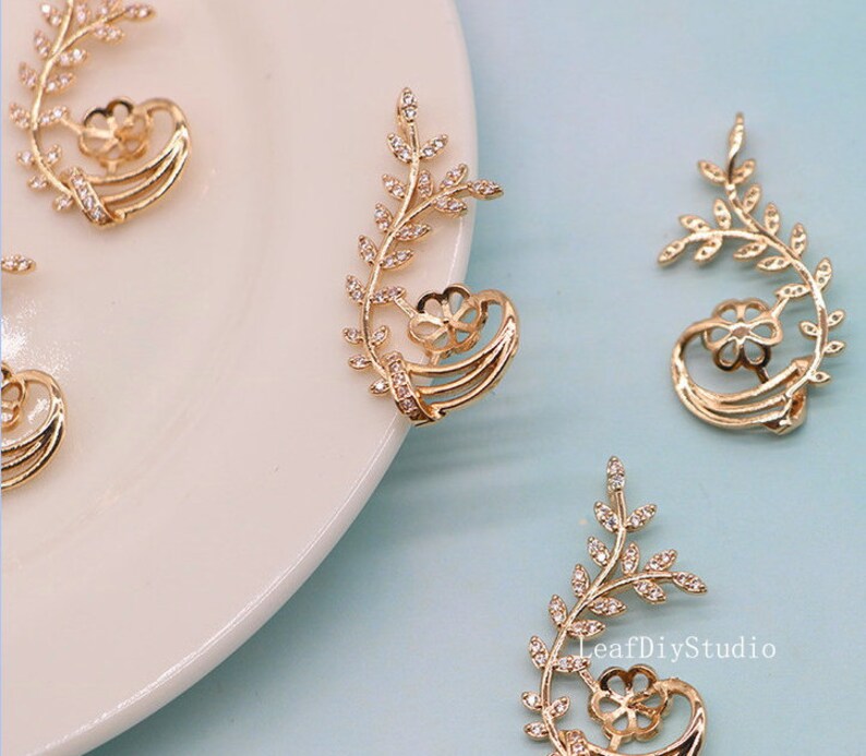 10pcs CZ Pave Flower branch Charm, 33x16.5mm CZ Zircon Flower Pendant, Zircon Jewelry Making, Zircon Material Craft Supplies