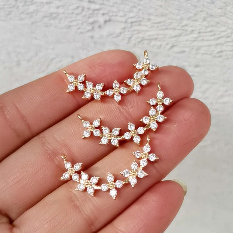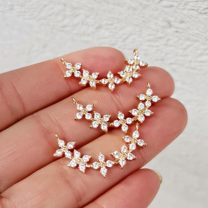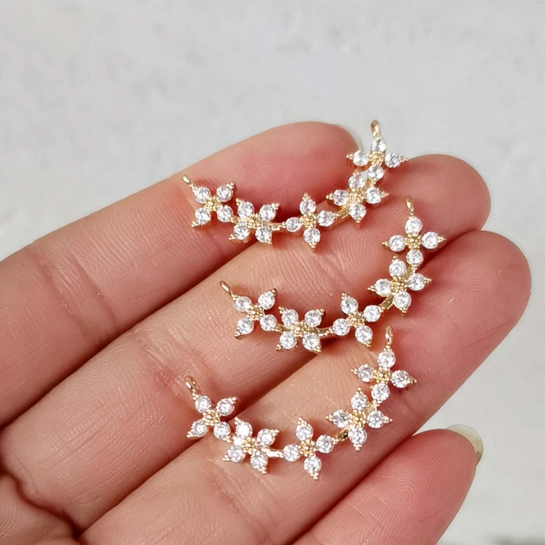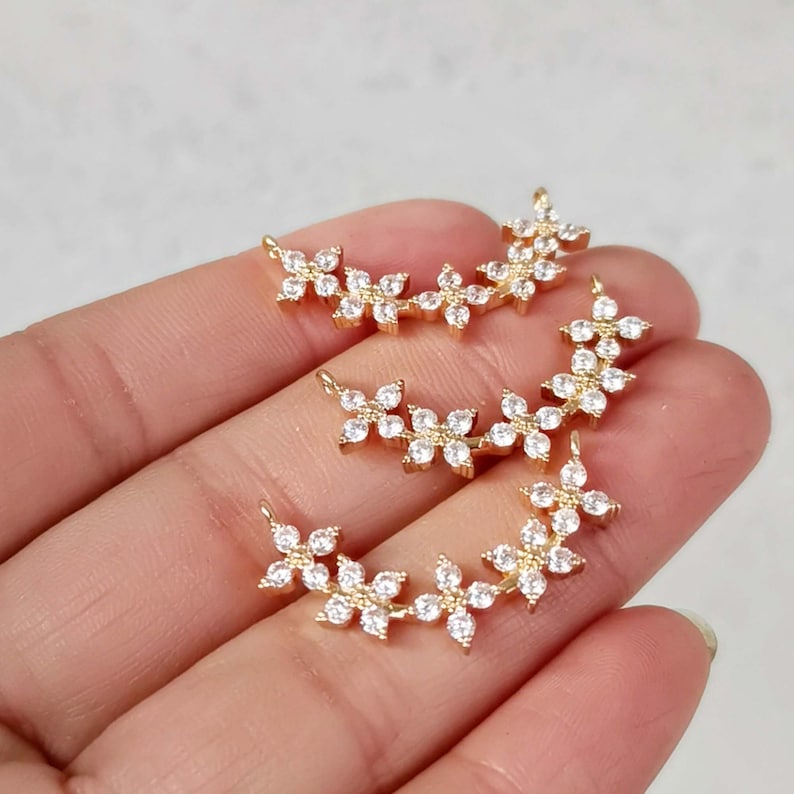 10pcs cz pave Flower charm,bracelet necklace pendant,pave charm,gold plated over brass