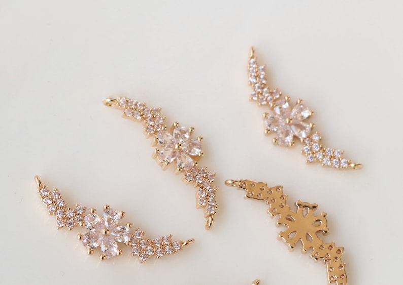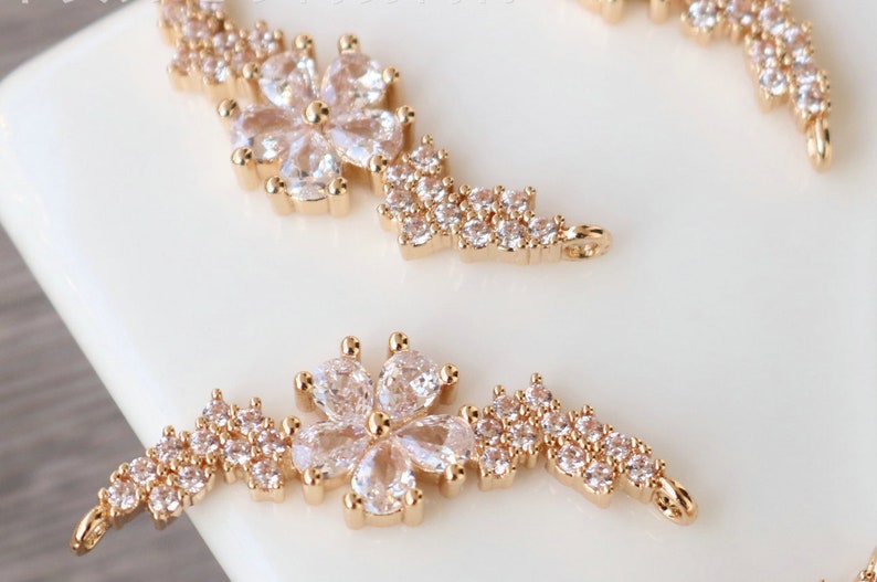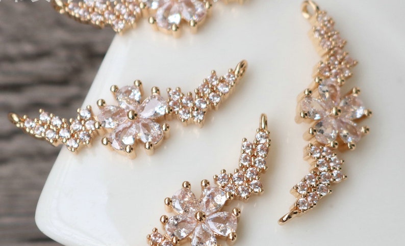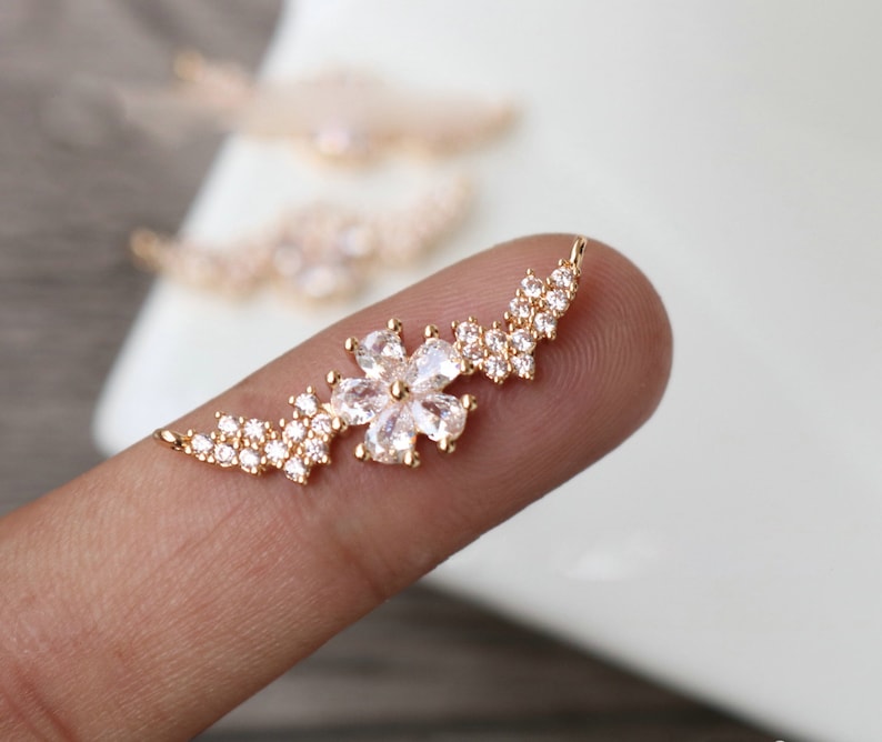 10pcs CZ Pave flowers Charm, flowers Zircon Connector, 10x31mm Gemstone Charm, Jewelry Making, Material Craft Supplies
