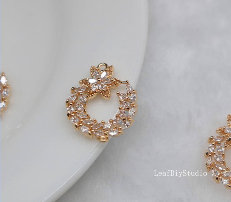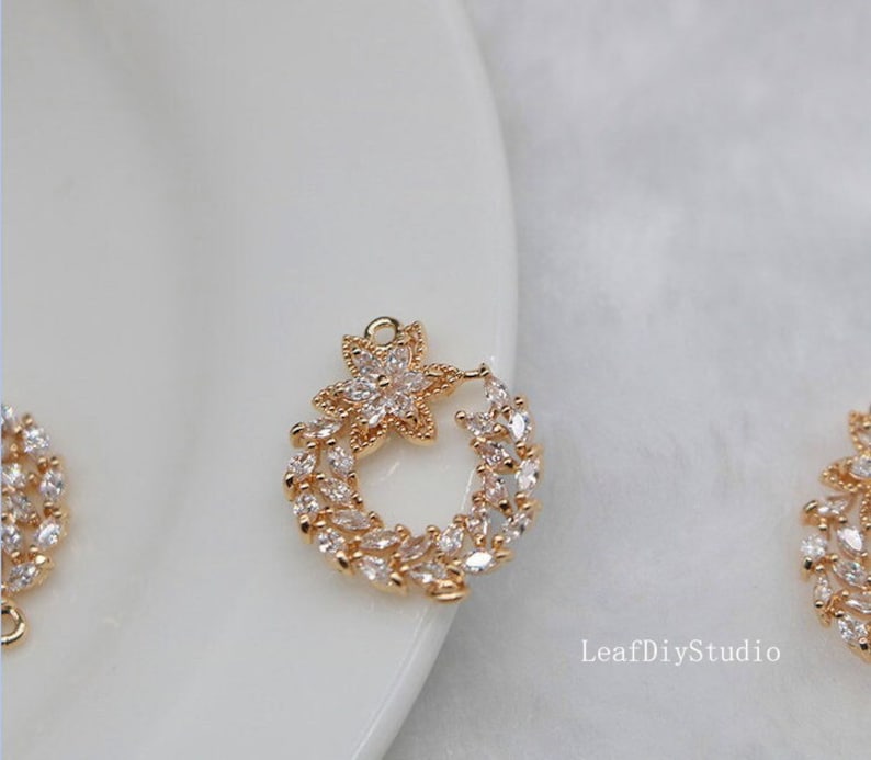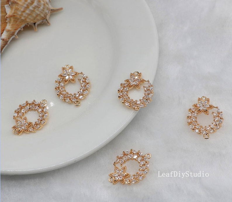 10pcs CZ Pave Garland Charm , 21.5x17mm Zircon Pendant Connector, Jewelry Making, Material Craft Supplies