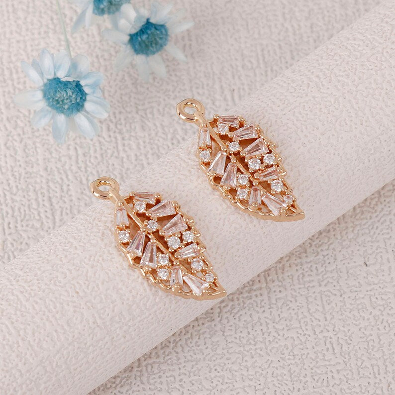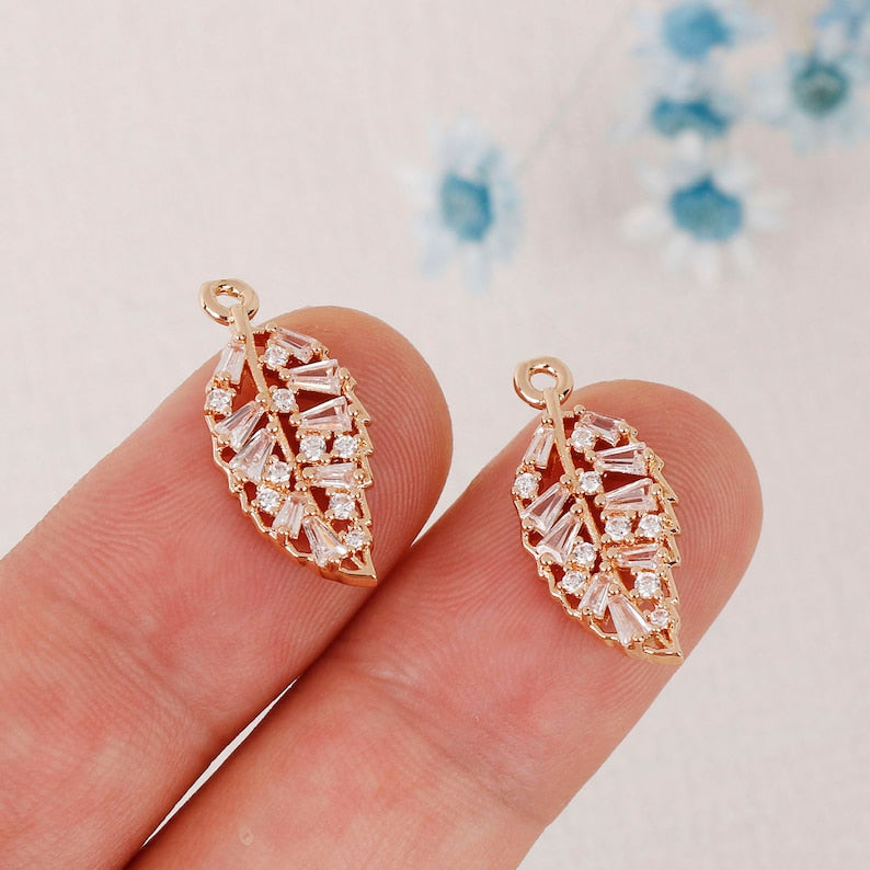 10pcs cz pave Leaves charm,bracelet necklace pendant,pave charm,gold plated over brass