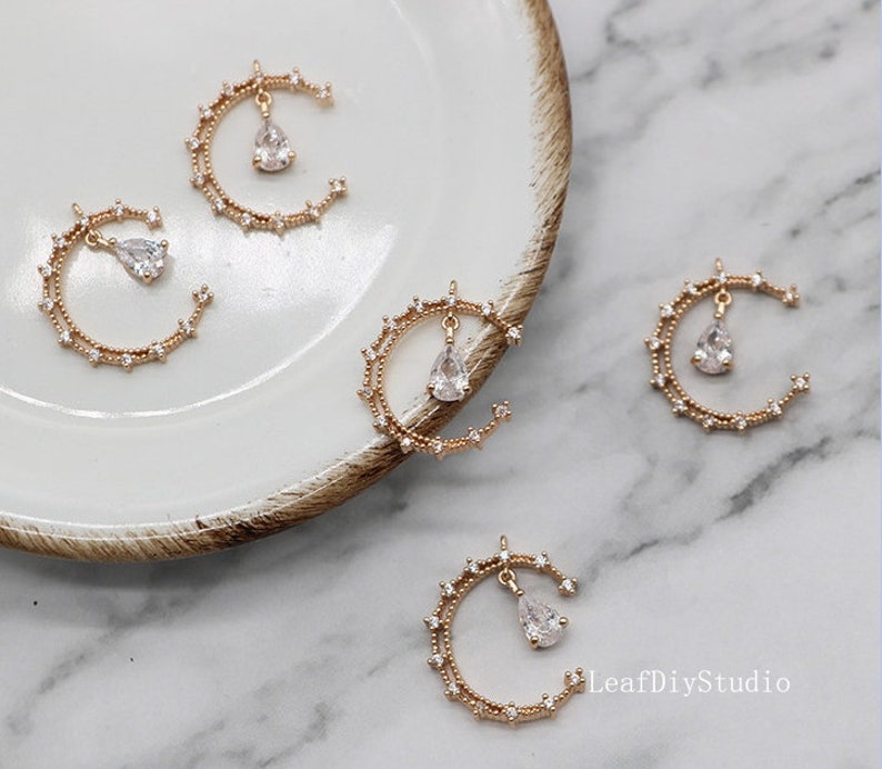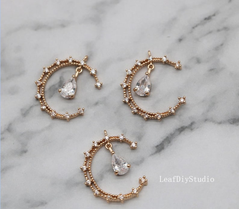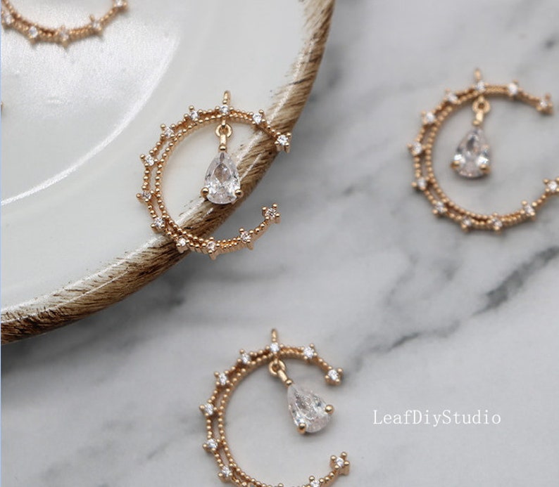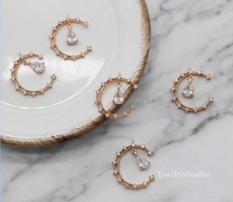 10pcs CZ Pave moon Charm Pendant, Zircon moon Pendant , Jewelry Making, Material Craft Supplies