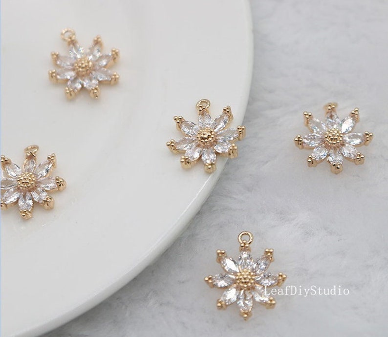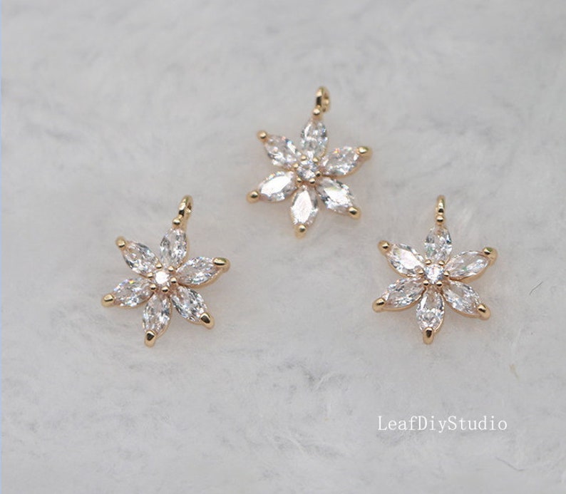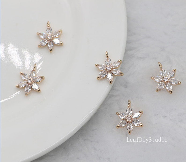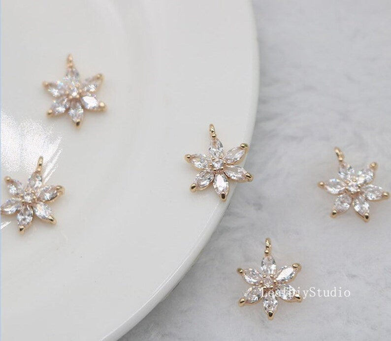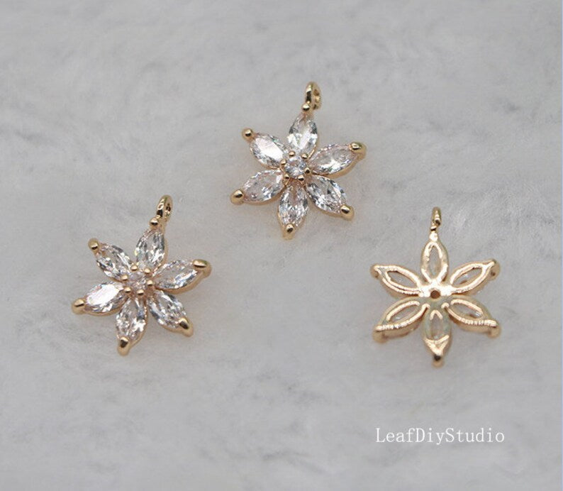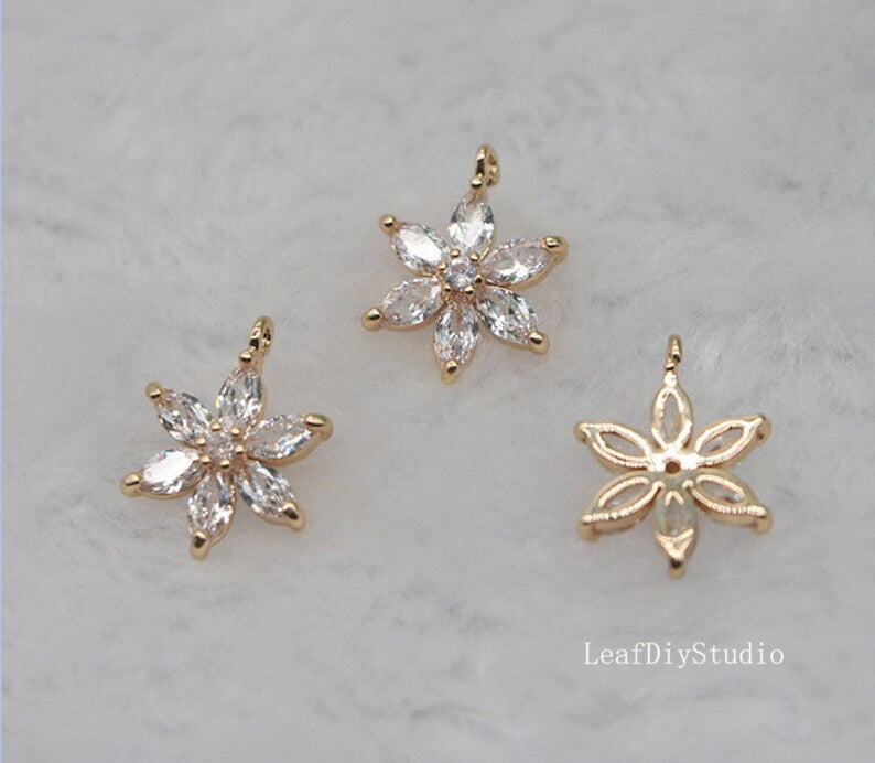 10pcs cz pave Six petal flower charm, 12.5mm ,bracelet necklace pendant, pave flower charm Pendant, gold plated over brass