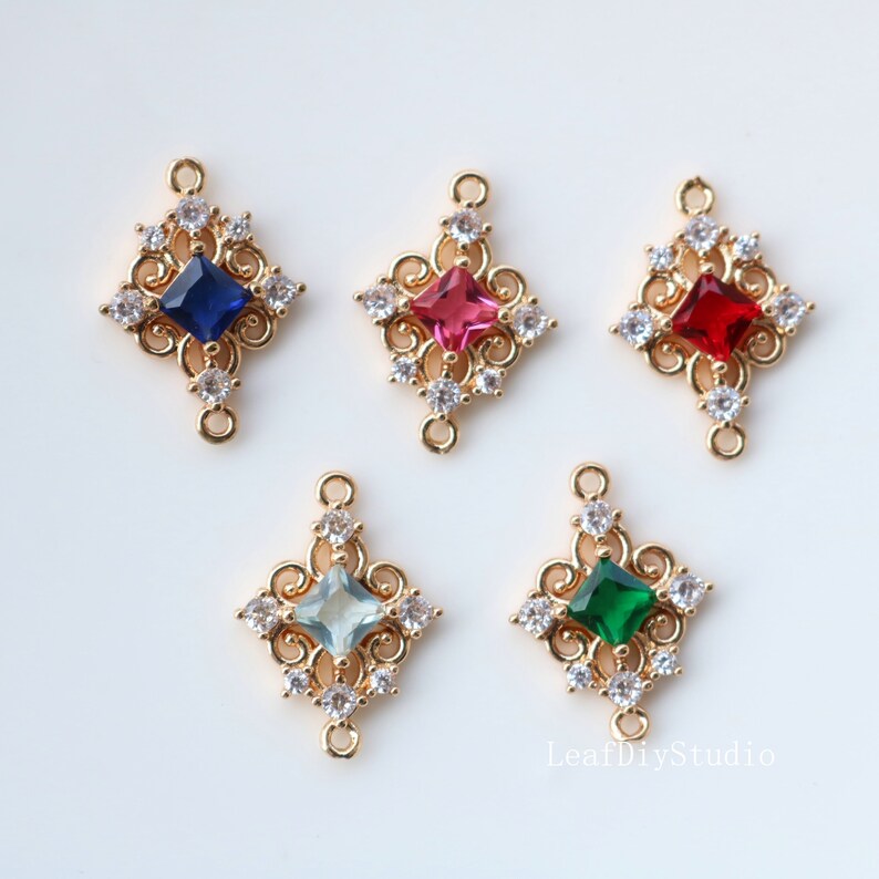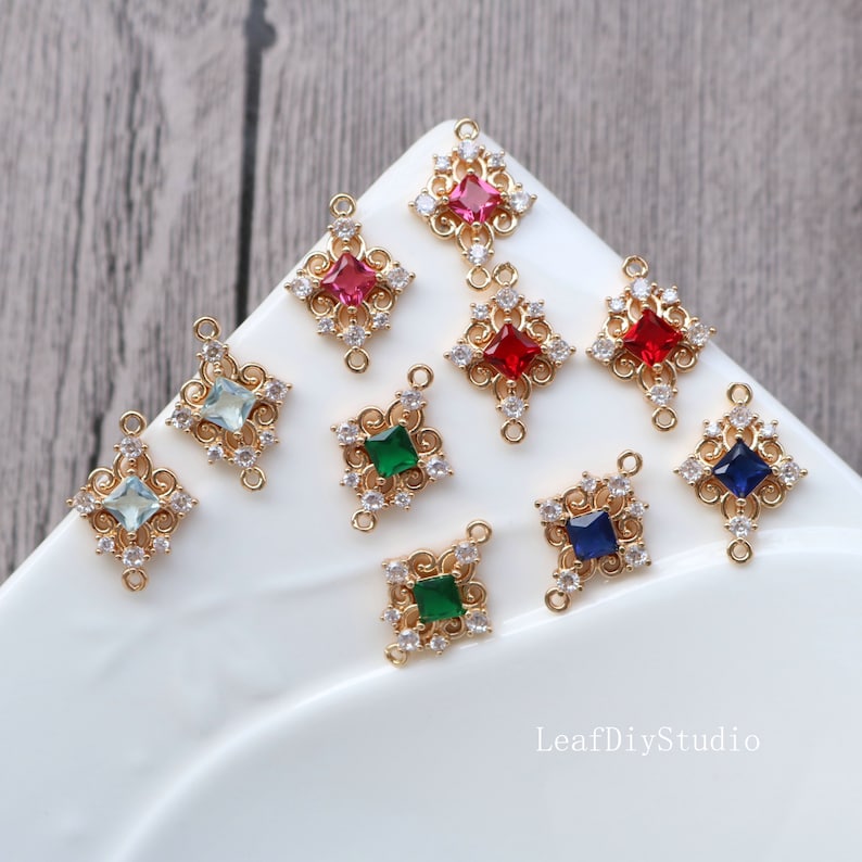 10pcs CZ Pave Square Charm, Square Zircon Connector, 11mm Clear Gemstone Charm, Jewelry Making, Material Craft Supplies