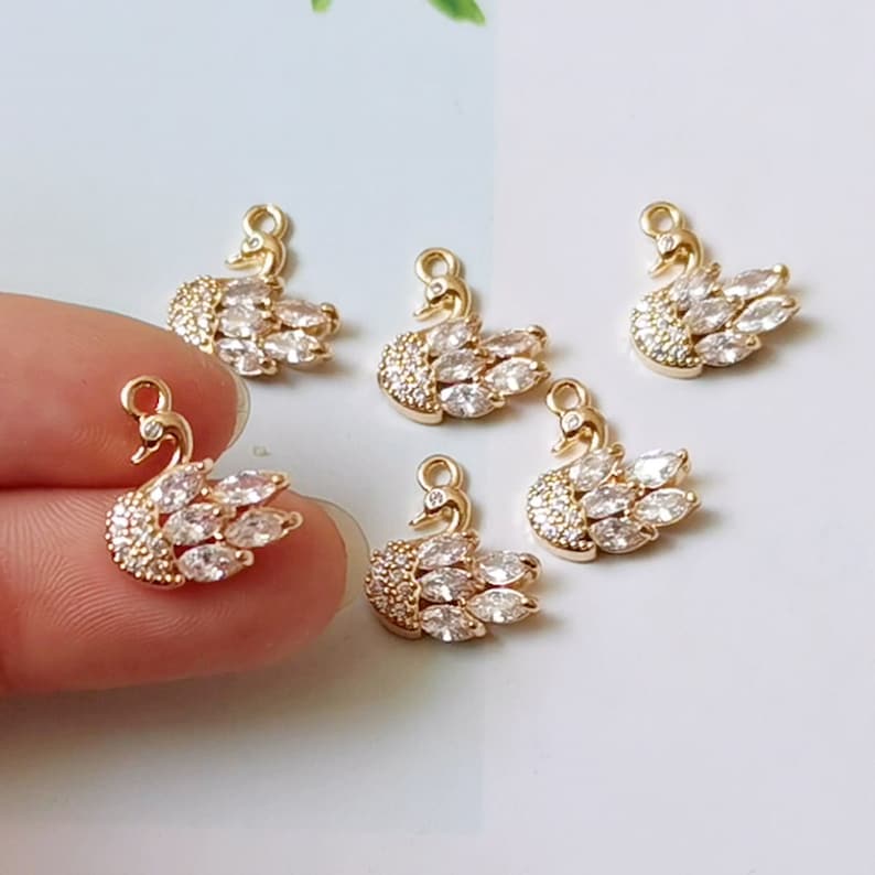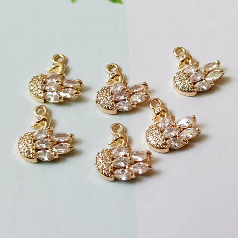 10pcs cz pave swan charm,bracelet necklace pendant,pave charm,gold plated over brass