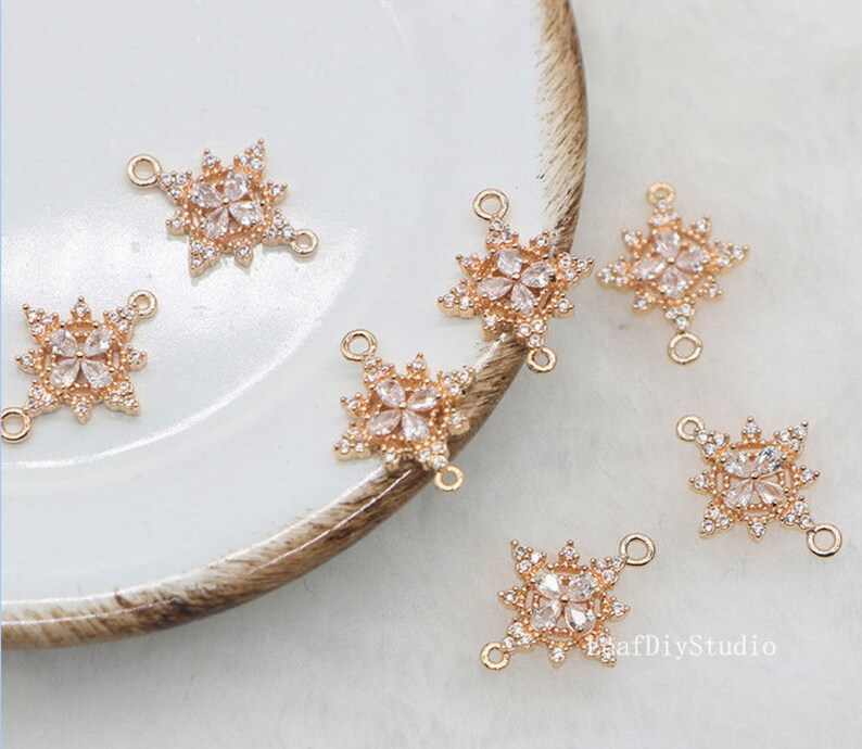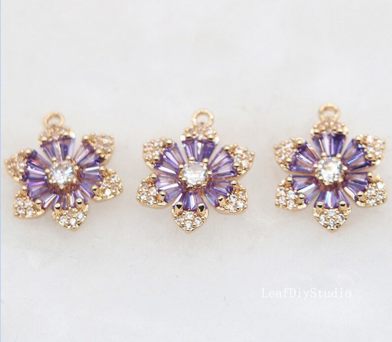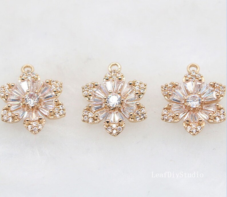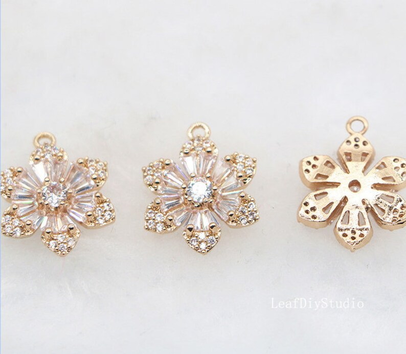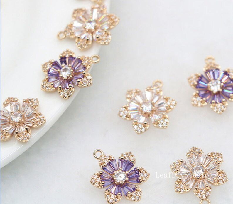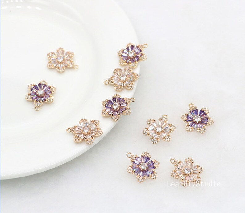 10pcs Five petal flower Zircon Pendant Charm, 16x9mm CZ Pave Connector Pendant, DIY Charm, Jewelry Making, flower Material Craft Supplies