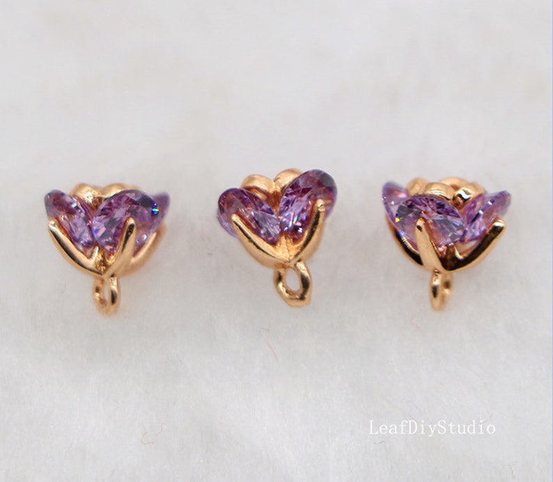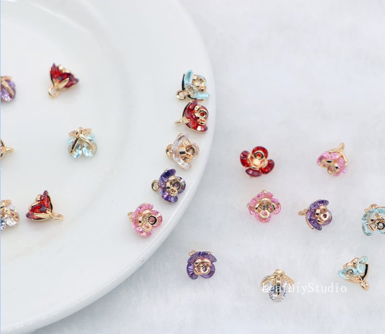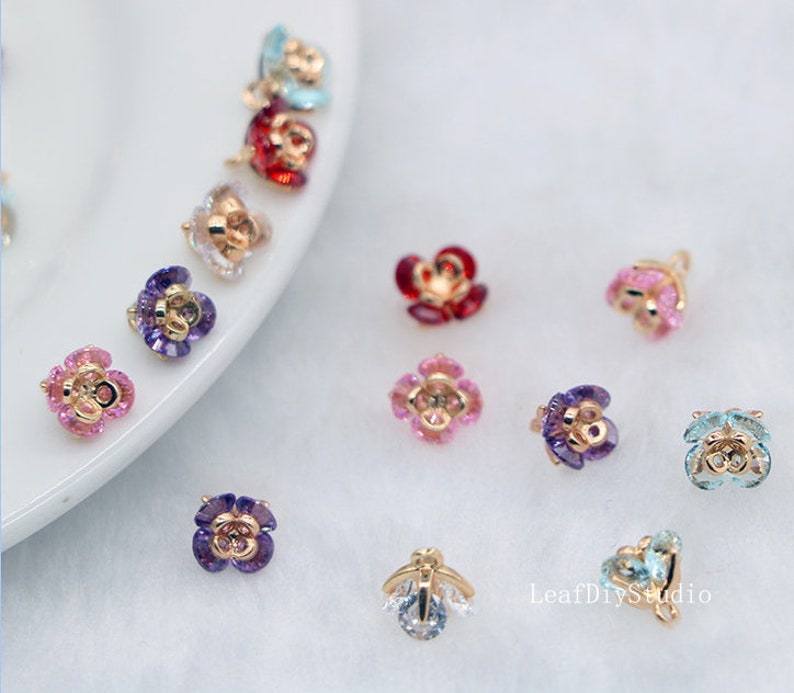 10pcs Flower pendant CZ Pave Charm, CZ Zircon 14x10mm Pendant, Zircon Jewelry Making, Flower Zircon Material Craft Supplies