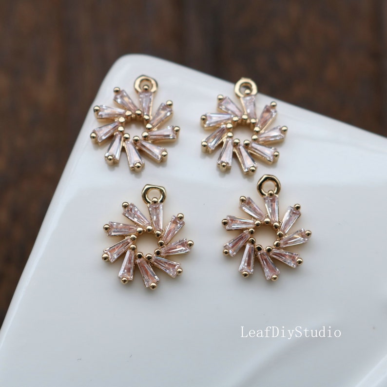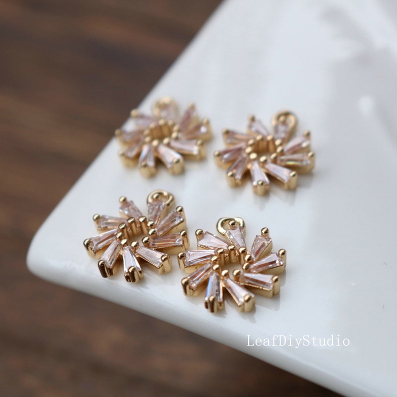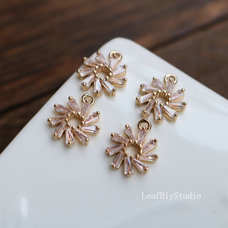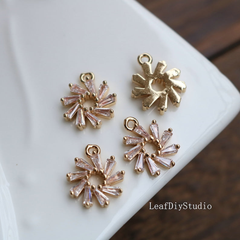 10pcs Flower zircon Charm pendant, 13mm Flower Zircon Charm, CZ Pave Pendant Charm, DIY Jewelry Making