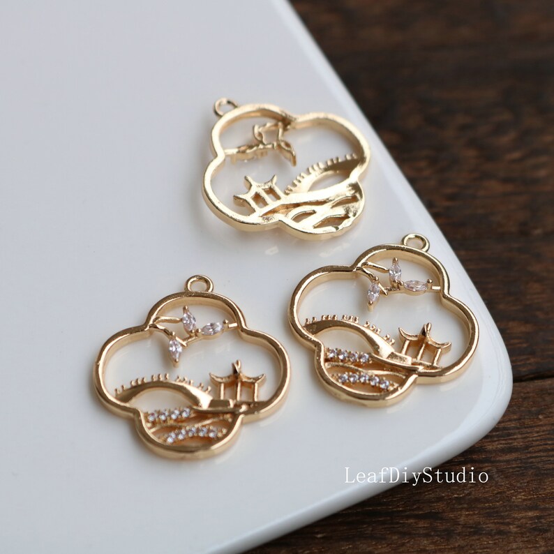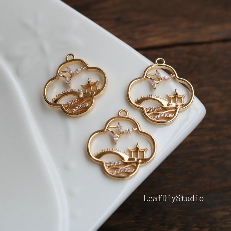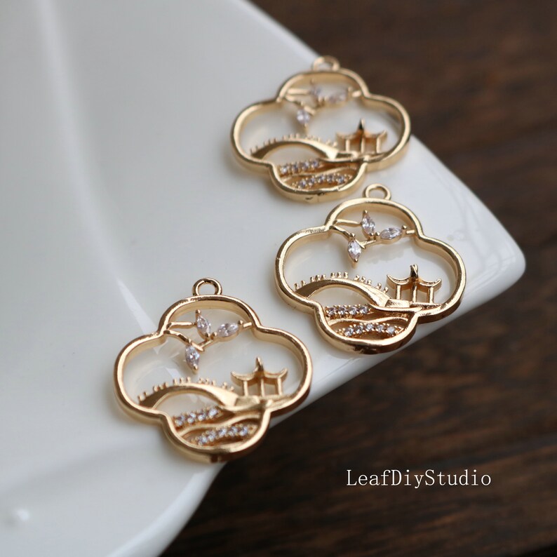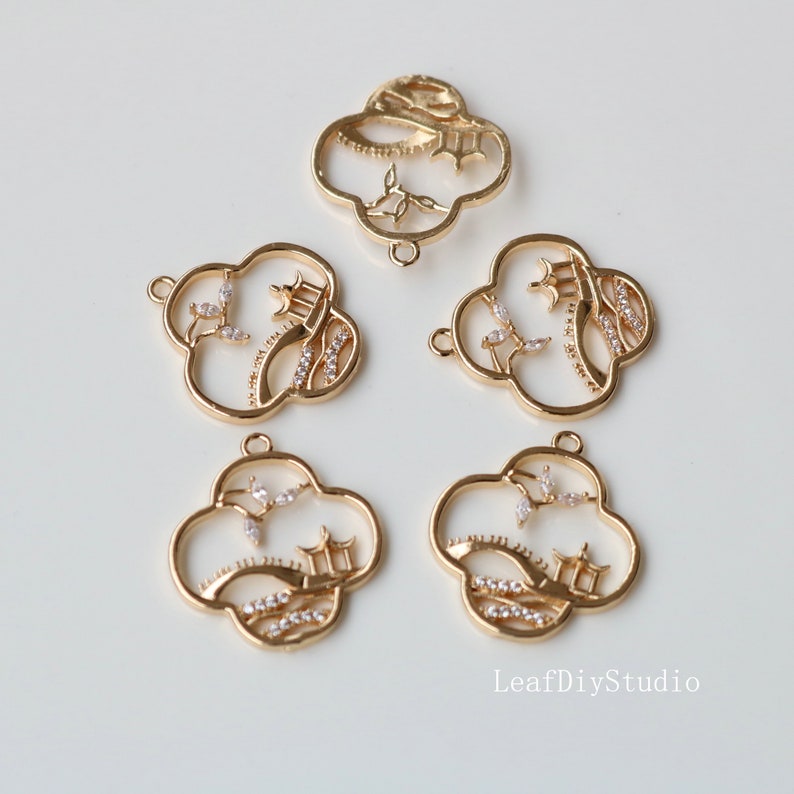 10pcs Four leaf clover Zirconia Charms, 24mm Small bridge and flowing water CZ Pave Flower Pendant, diy Jewelry Making