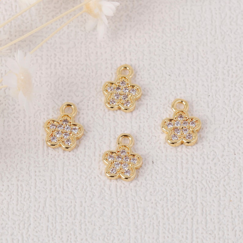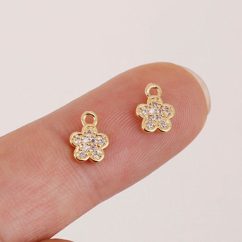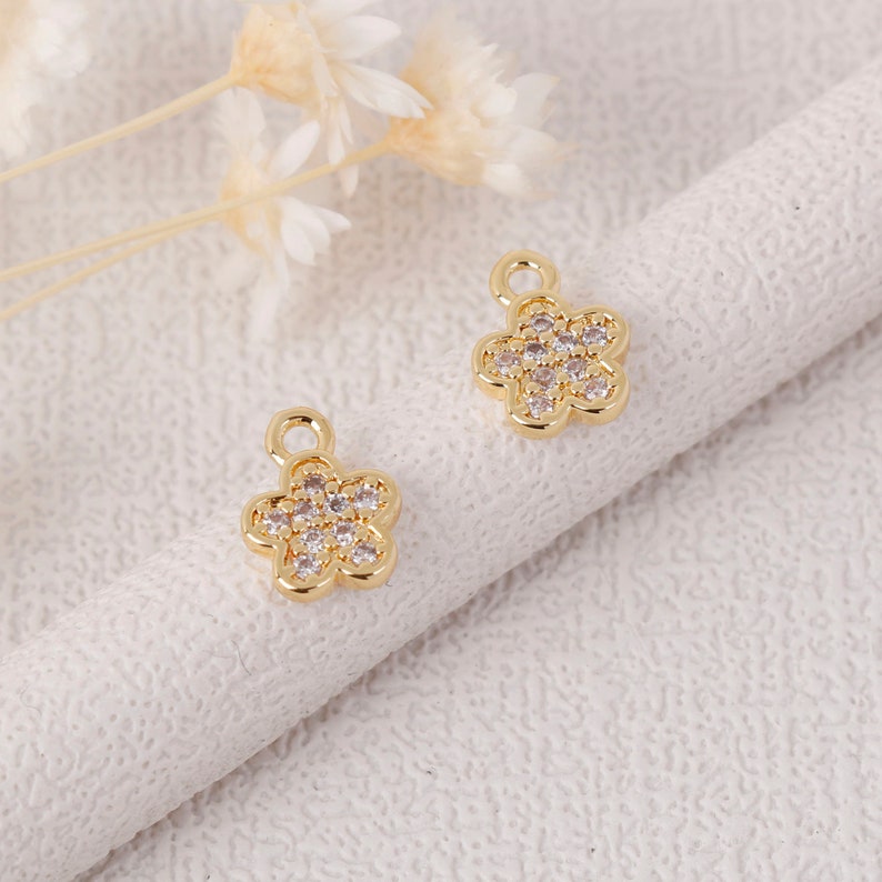 10PCS Gold Plated Cubic Zirconia Charms,CZ Pave Flower Pendant