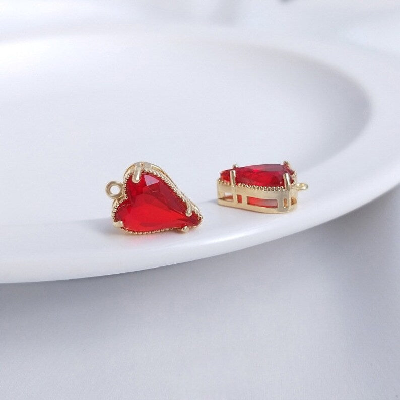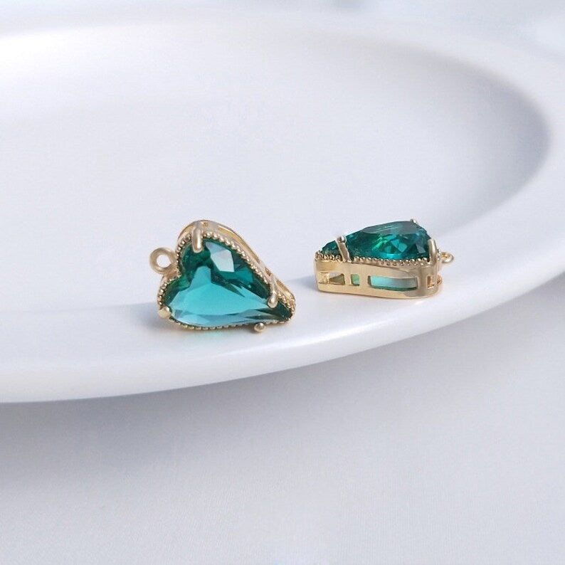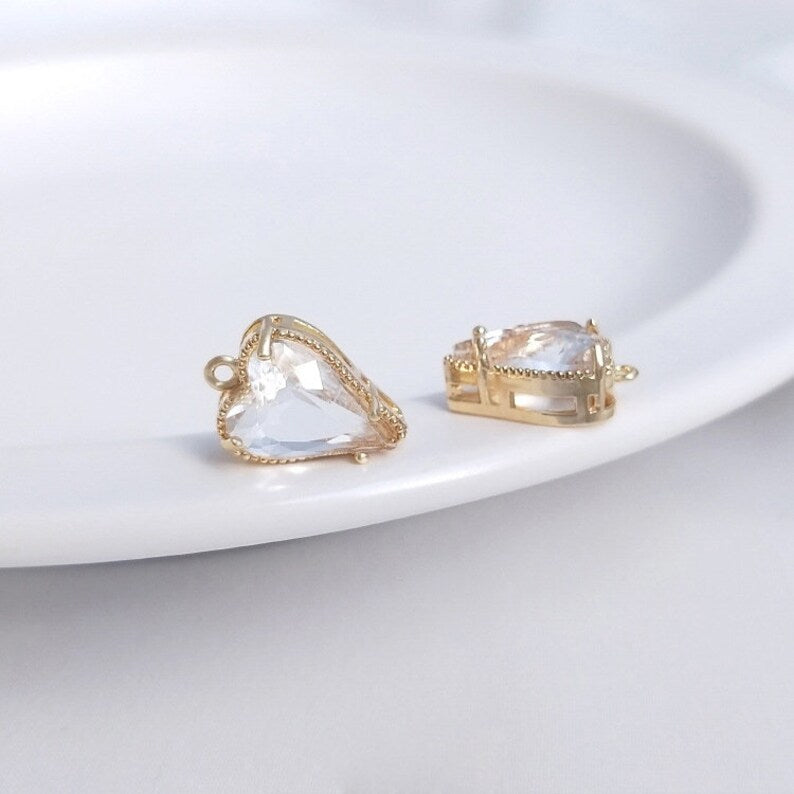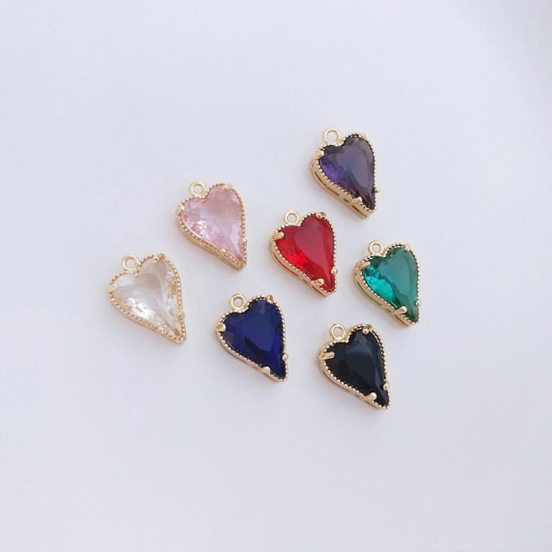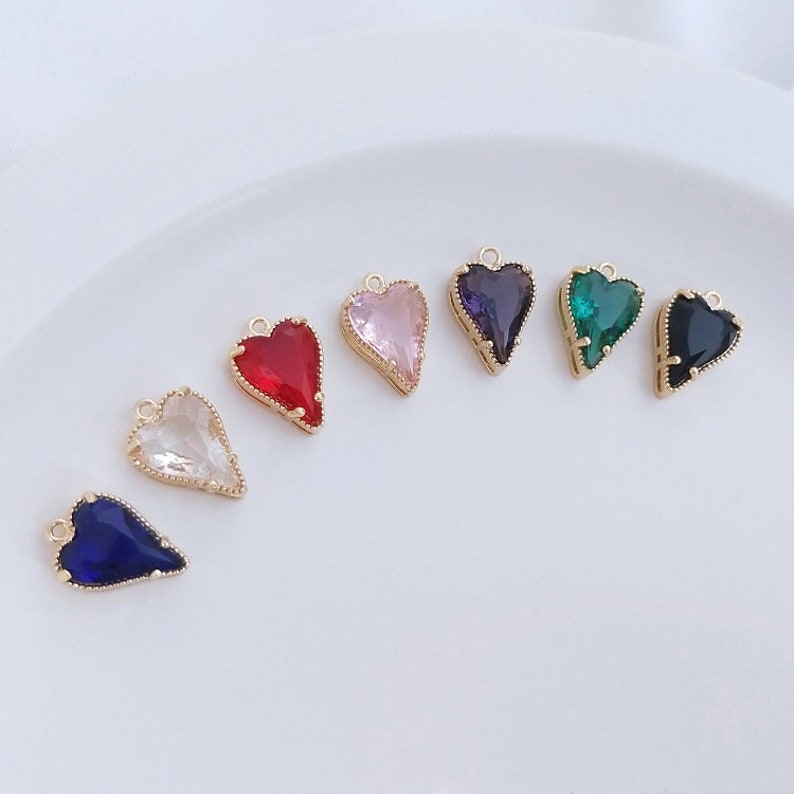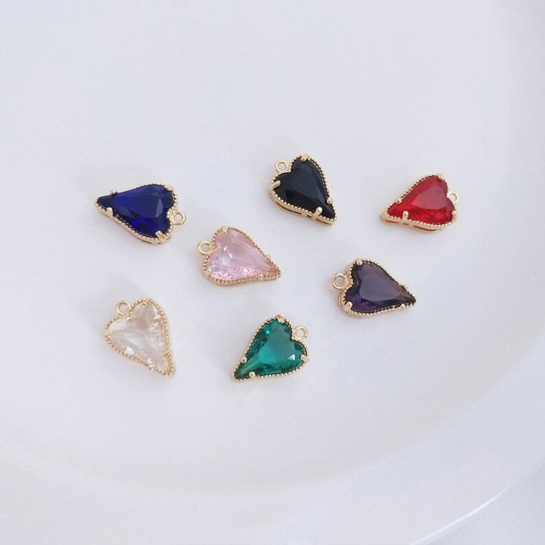 10pcs Heart Crystal Glass CZ Pave long Heart Pendant, Zircon Pendant, Jewelry Making, Heart Zircon Material Craft Supplies Heart
