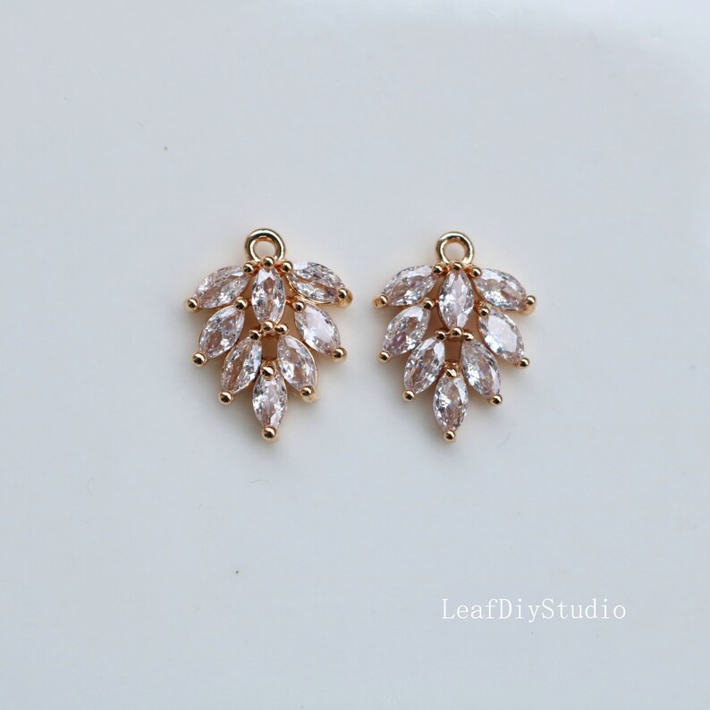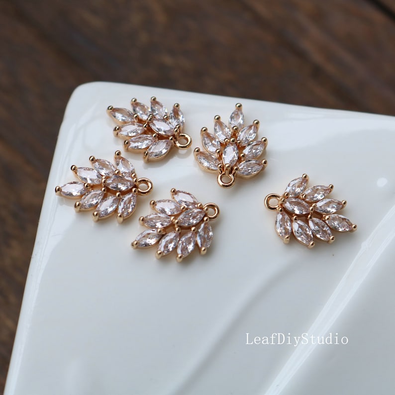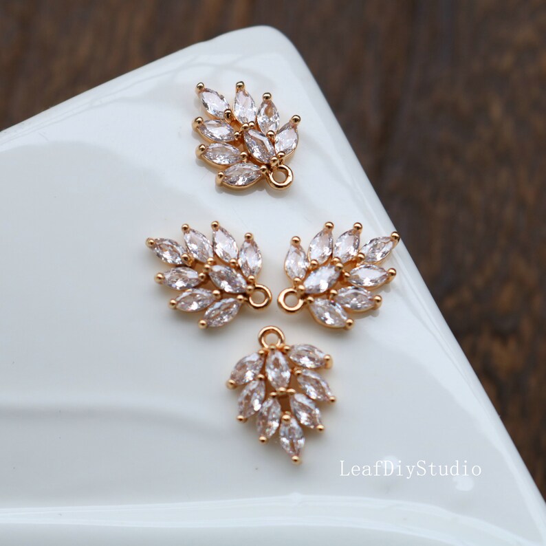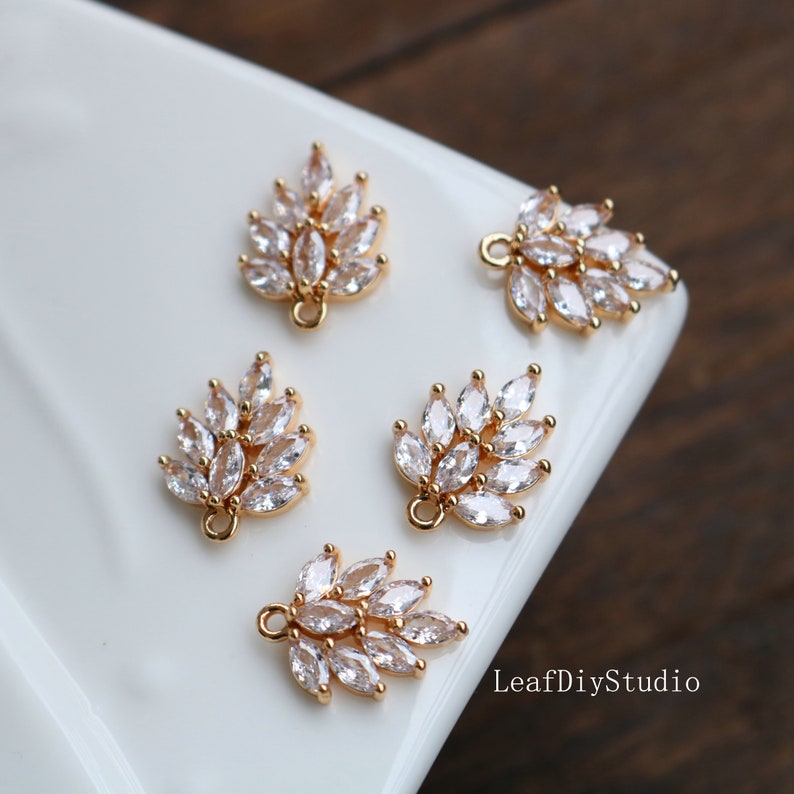10pcs Leaves CZ Pave Charm, grape leaves zircon Charm Pendant, Diy Glass crystal Pave Charm, Jewelry Making Supplies