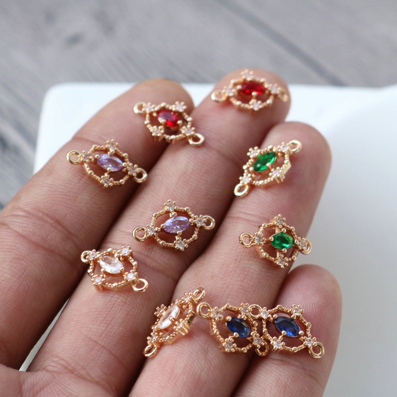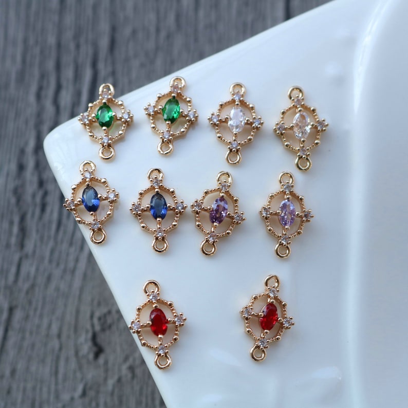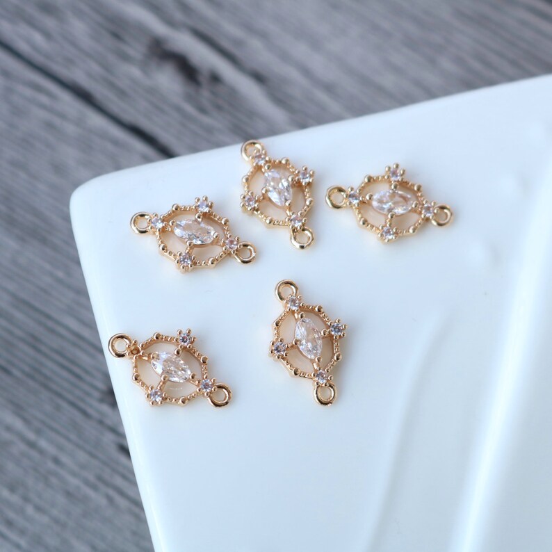 10pcs Oval hollow cross grass CZ Pave Charm, Clear Zircon Connector, 10x16mm Gemstone Charm,Jewelry Making, Material Craft Supplies