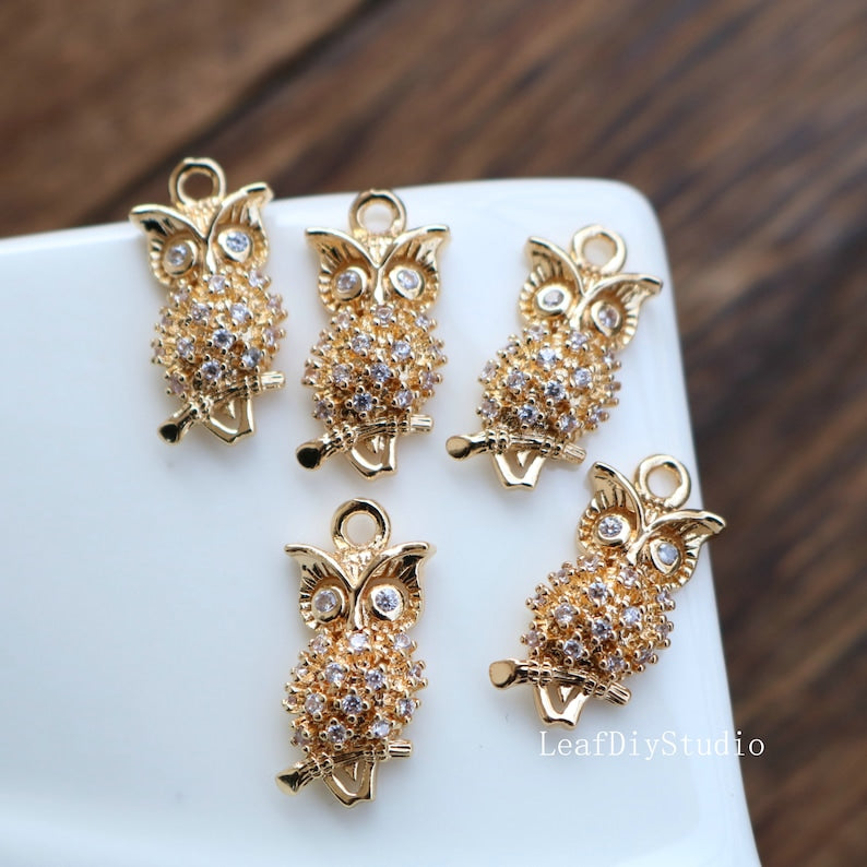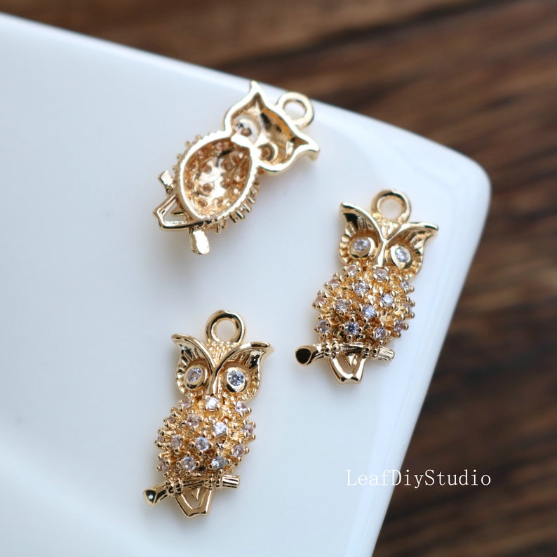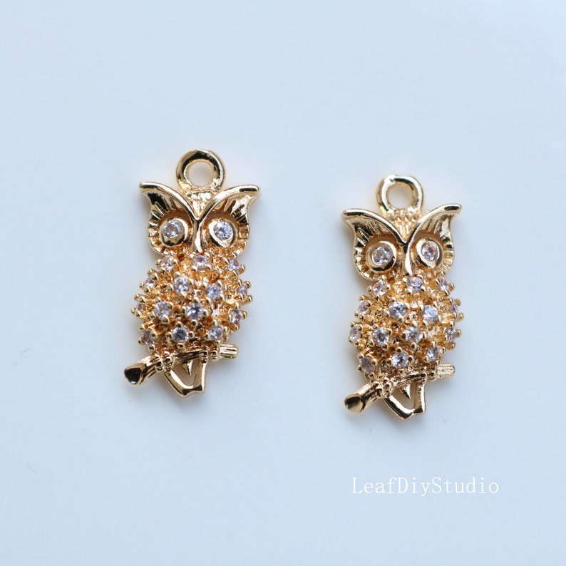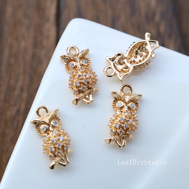 10pcs owl CZ Pave Charm, zircon owl Charm Pendant, crystal Pave Charm, owl Jewelry Making Supplies wholesale prices