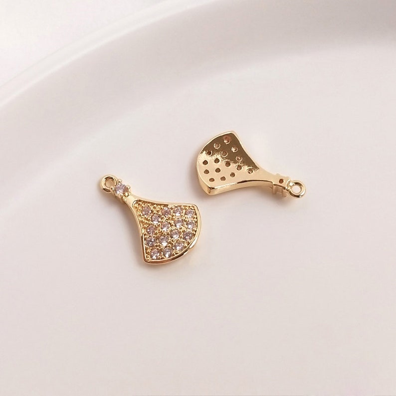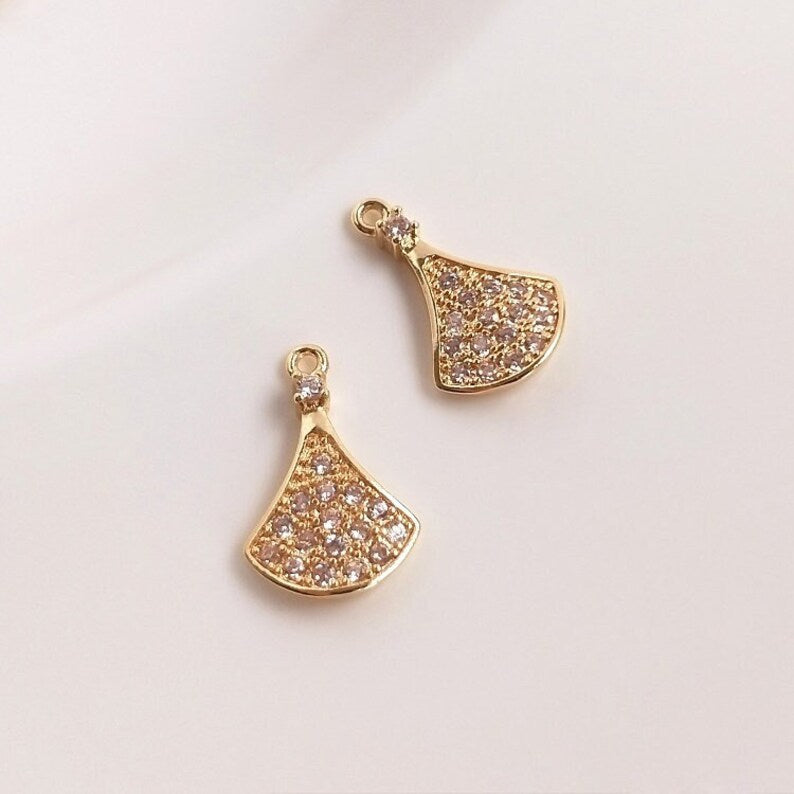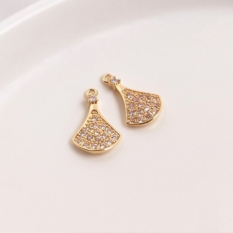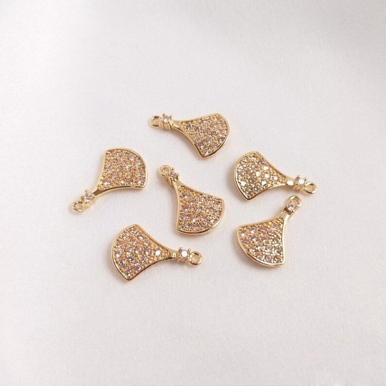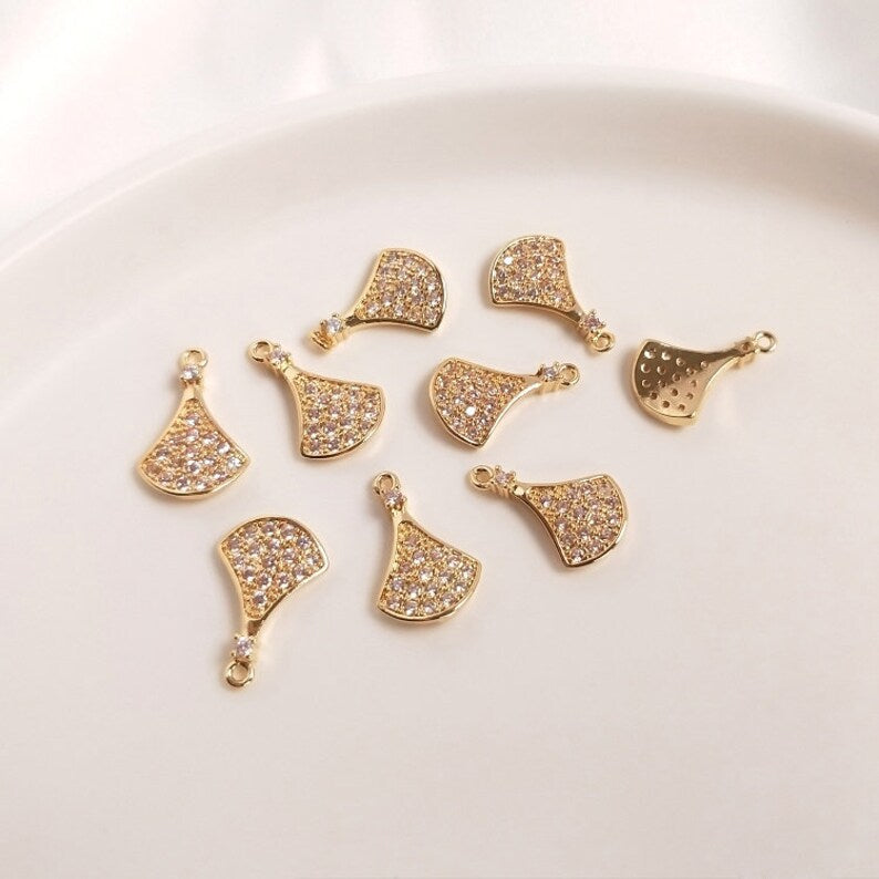 10pcs small skirt CZ Pave Charm Pendant , apricot leaves Zircon Connector Pendant, Jewelry Making, Zircon Material Craft Supplies