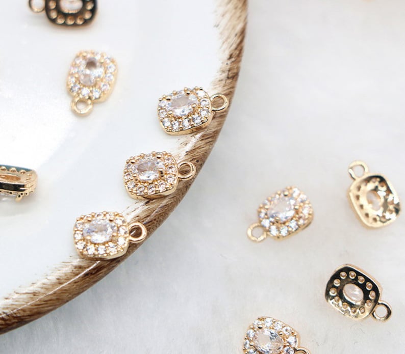 10pcs square CZ Pave Charm, 6x8.8mm zircon Charm Pendant, Diy Glass crystal Pave Charm, Jewelry Making Supplies