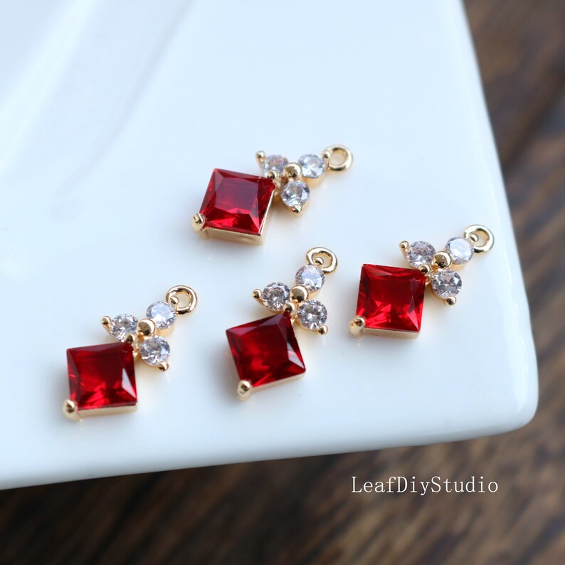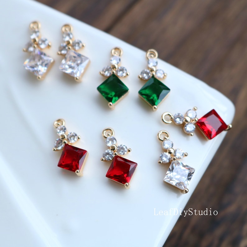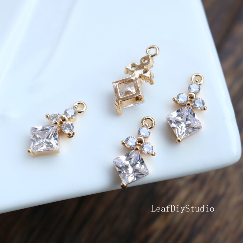 10pcs square Glass zircon Charm pendant, 8x18mm Zircon Charm, CZ Pave Pendant Charm, DIY earrings necklace pendant Jewelry Making