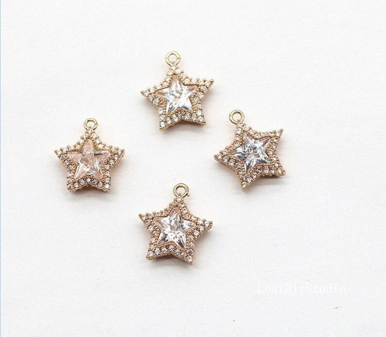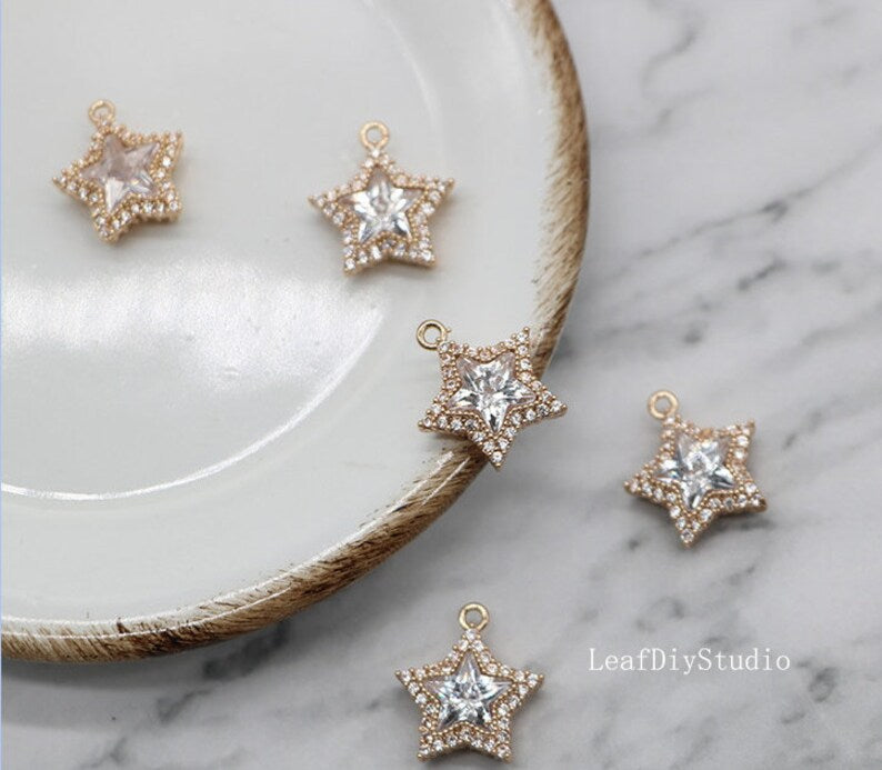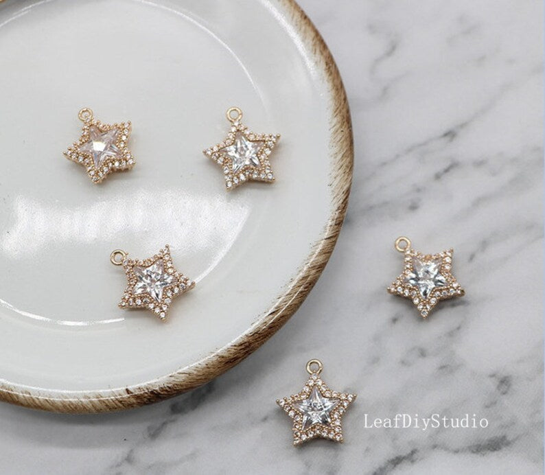 10pcs Star 10mm CZ Pave Charm, CZ Zircon 13mm Pendant Charm, Jewelry Making, Material Craft Supplies