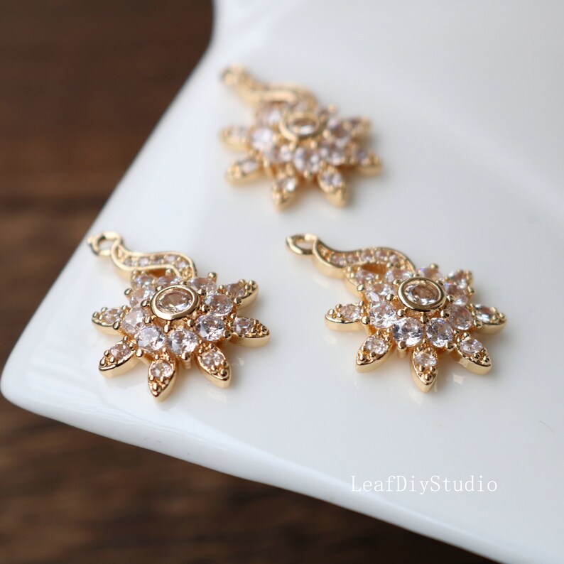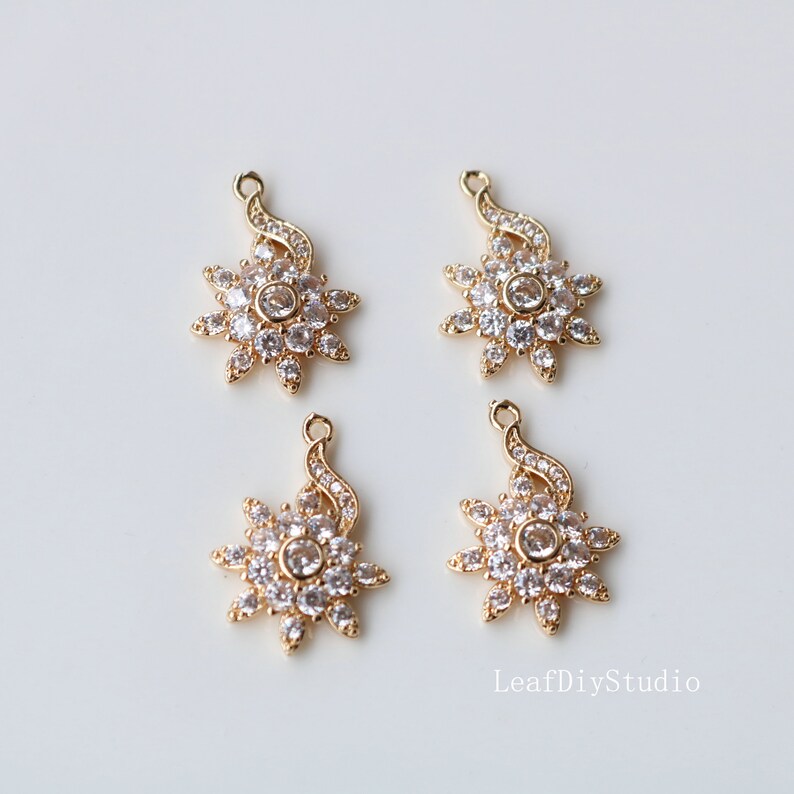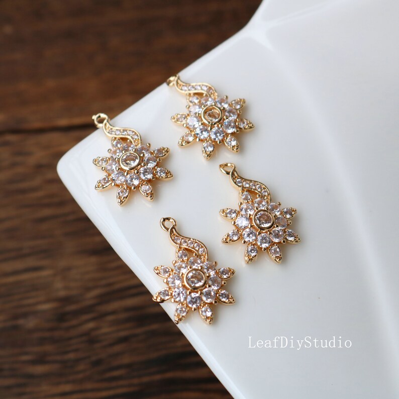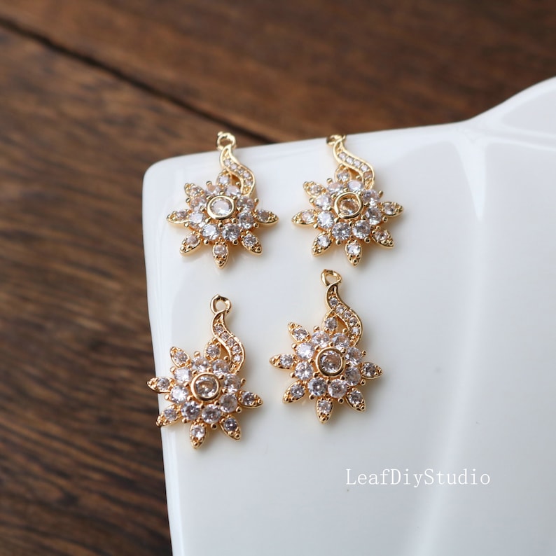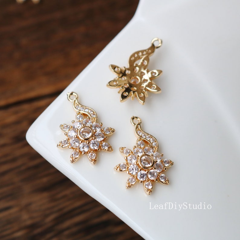 10pcs Sun flower zircon Charm pendant, 15x21mm Zircon Charm, Star CZ Pave Pendant Charm, DIY Finding Jewelry Making