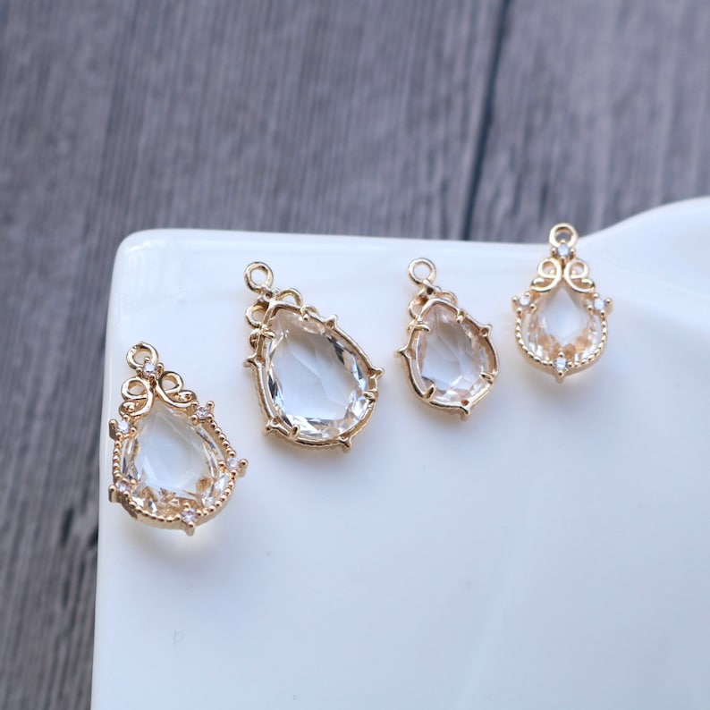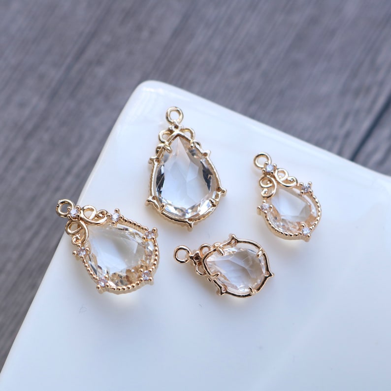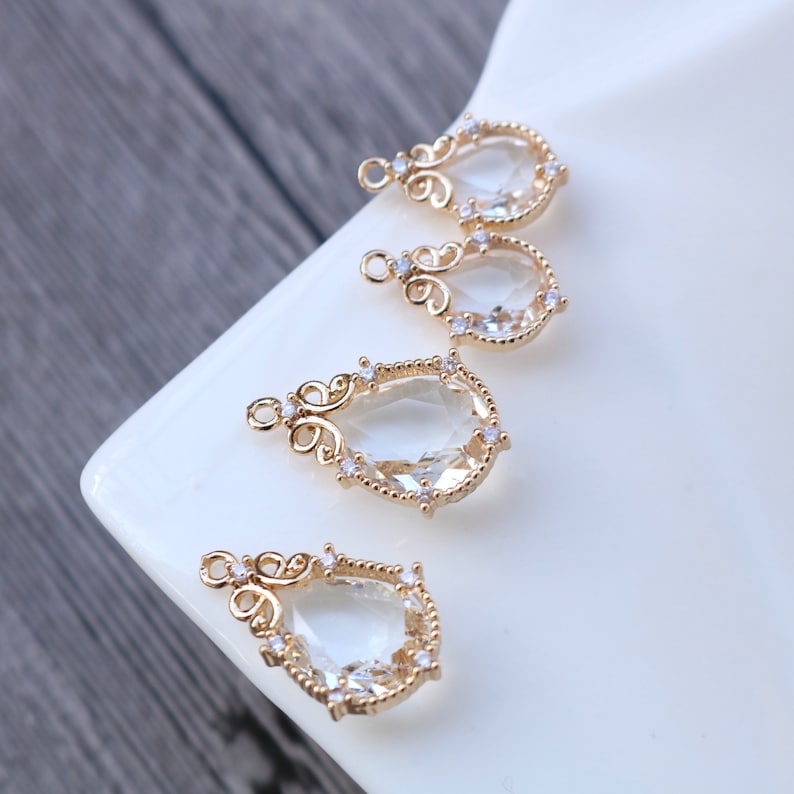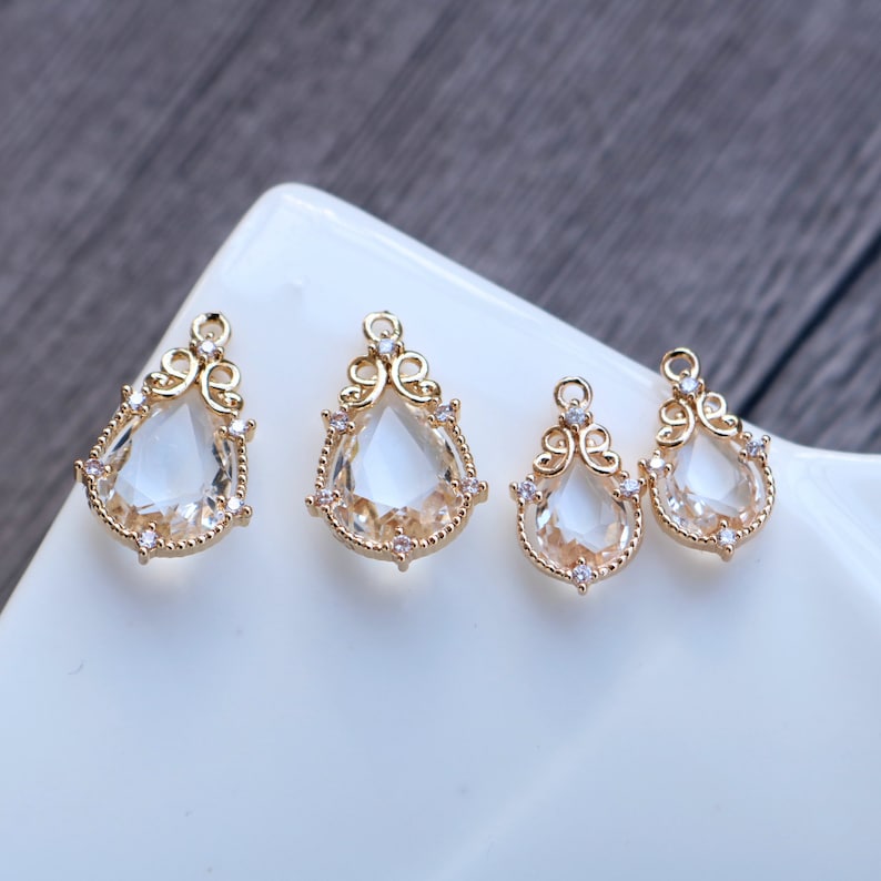 10pcs teardrop CZ Pave Charm, three flowers zircon Charm Pendant 10X17mm 21X14mm ,crystal Pave Charm, wholesale prices, High Quality