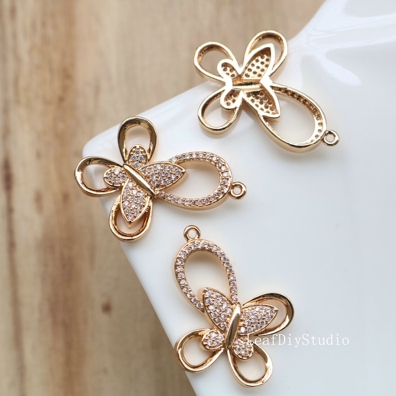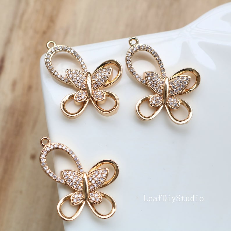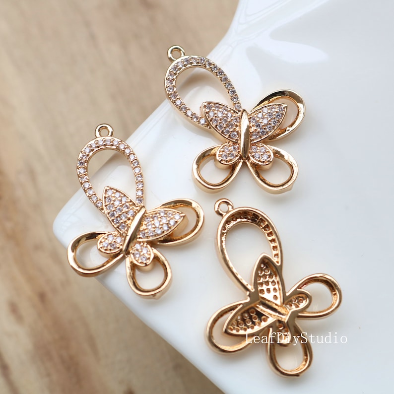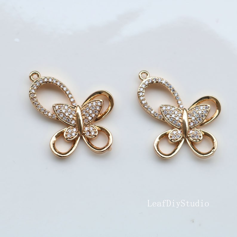 2pcs CZ Pave Butterfly Charm, 24x26mm Butterfly zircon Charm Pendant, crystal Pave Charm, Butterfly Jewelry Making Supplies