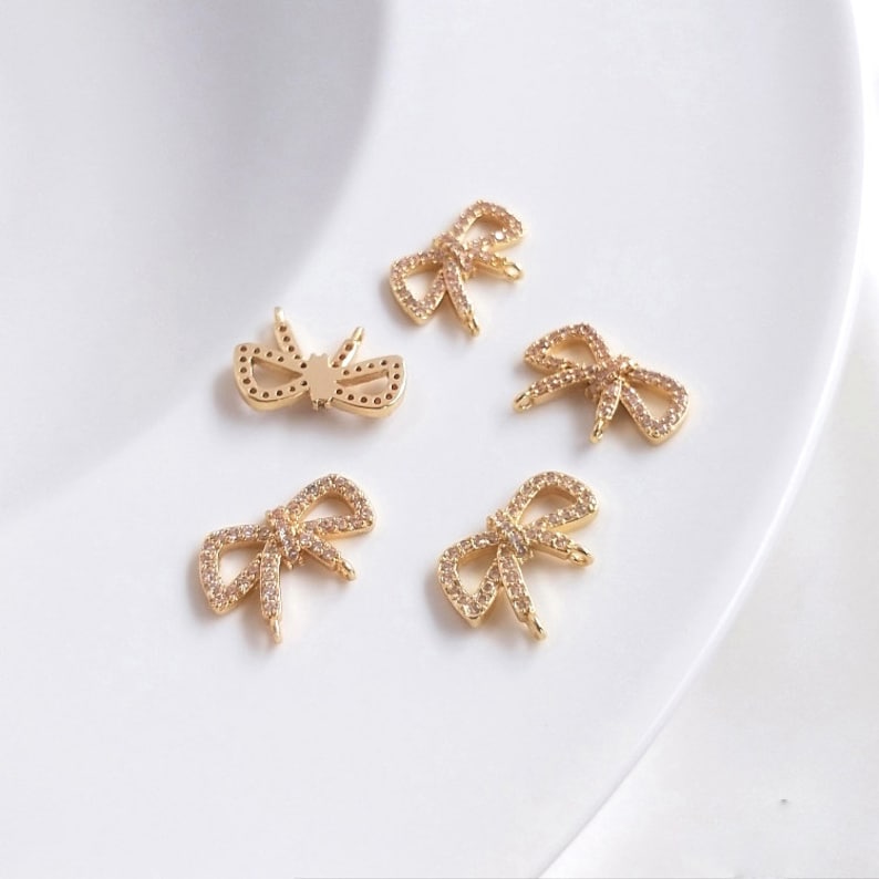 4pcs bow tie cz pave swan charm, bow crystal pendant, Inlaid zircon bracelet pendant, DIY Jewelry Making