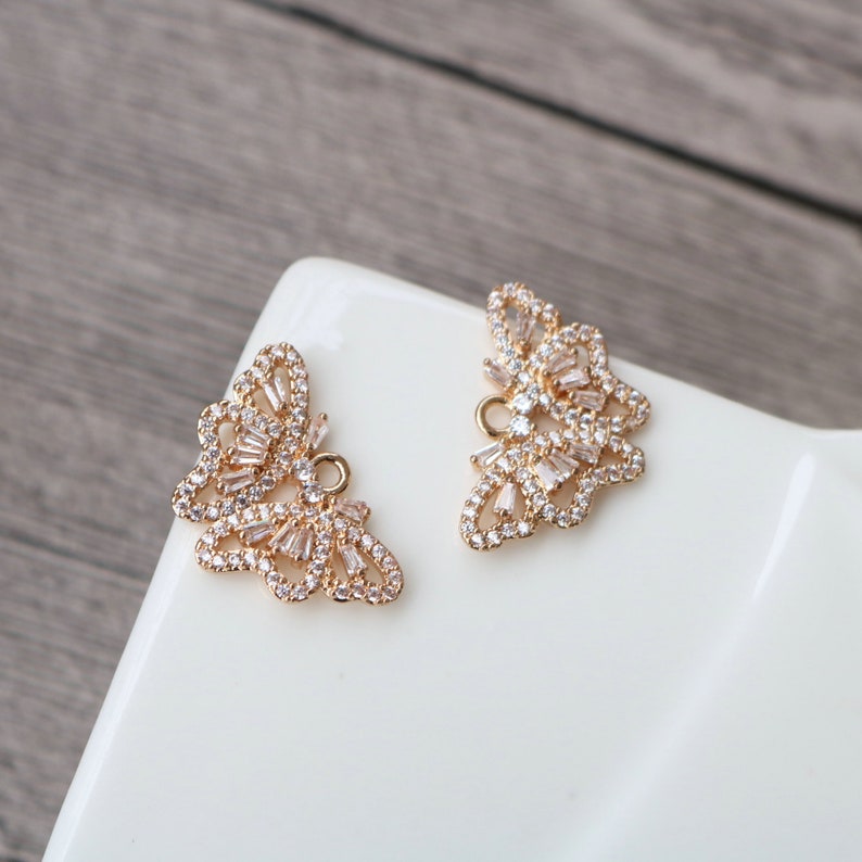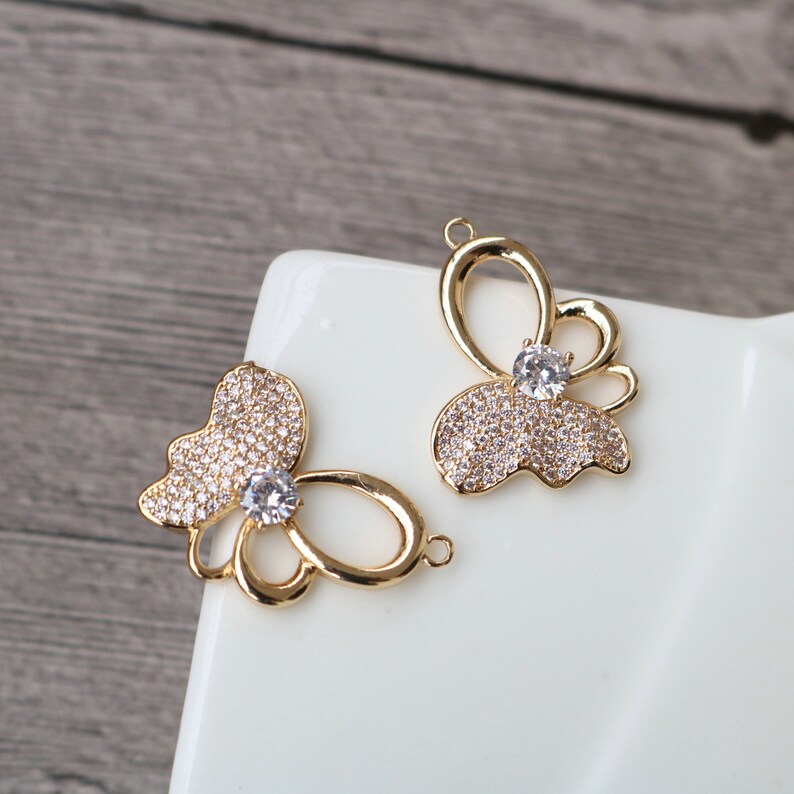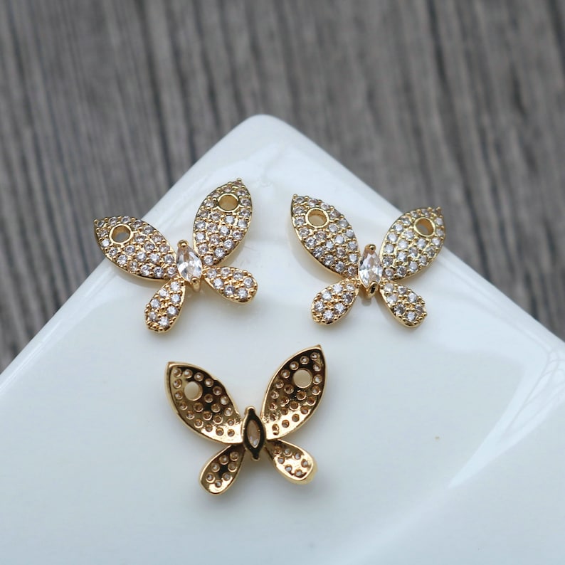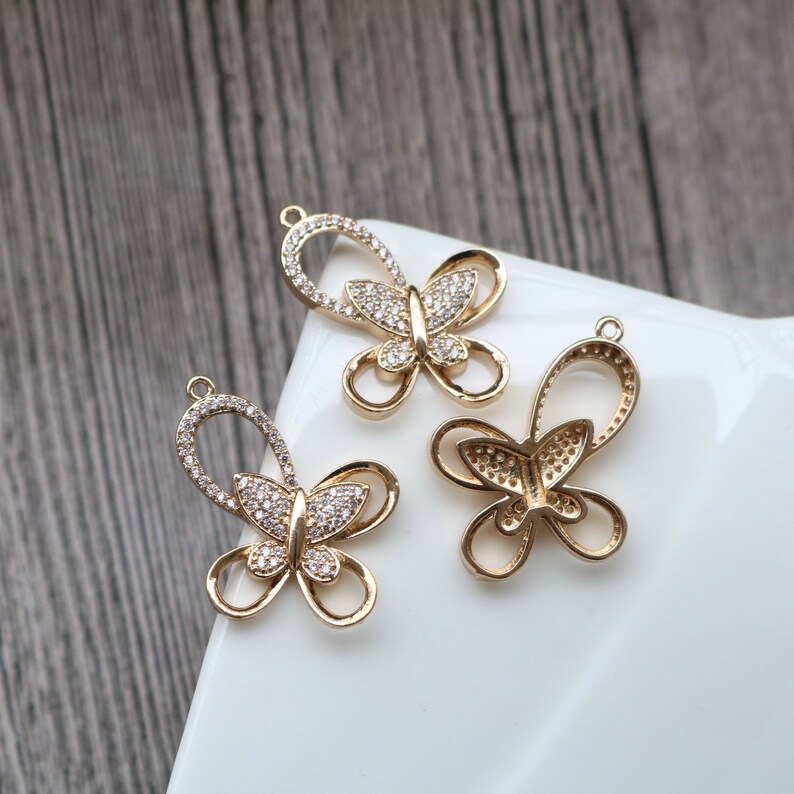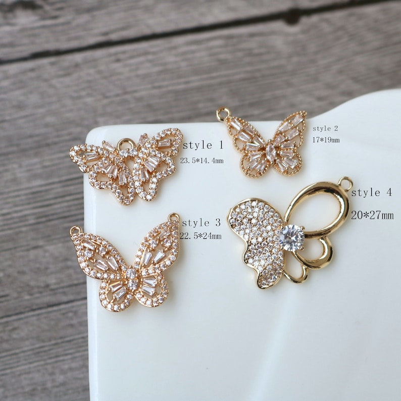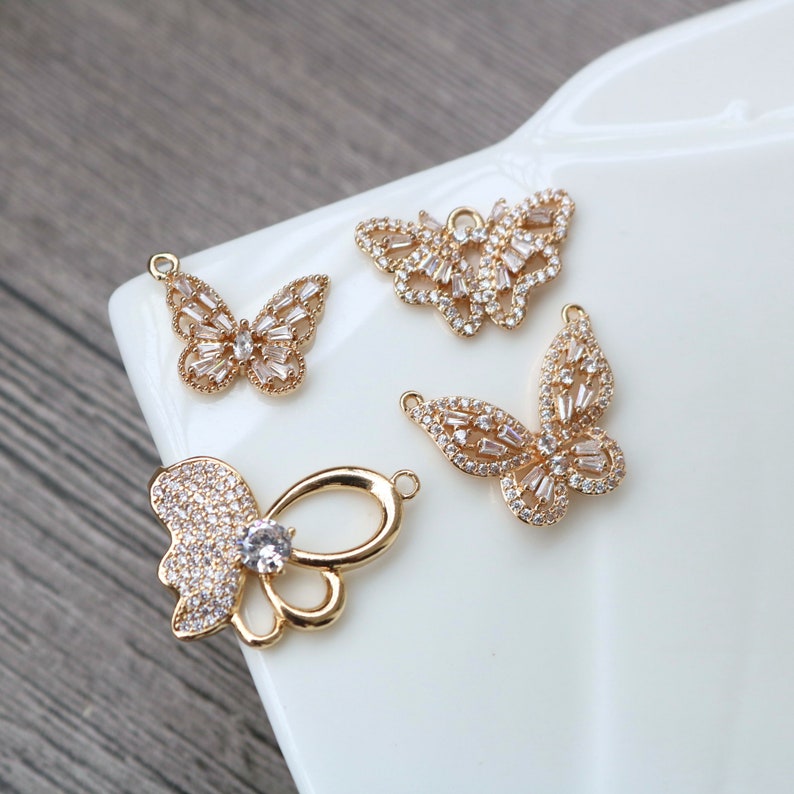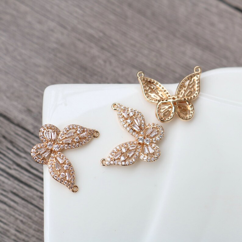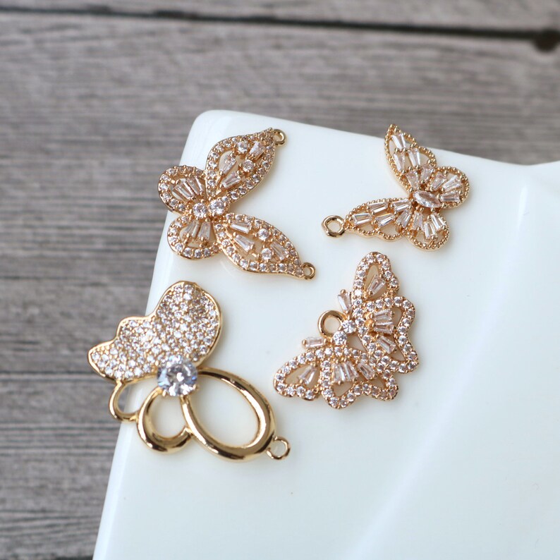 4pcs CZ Pave butterfly Charm Pendant, Zircon butterfly Connector, Jewelry Making, Material Craft Supplies