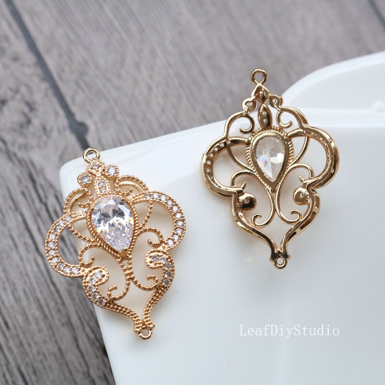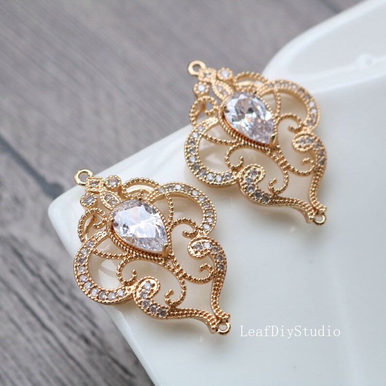 4pcs CZ Pave Charm, Diamond Zircon Connector, 29x42mm Clear Gemstone Charm, Jewelry Making, Material Craft Supplies