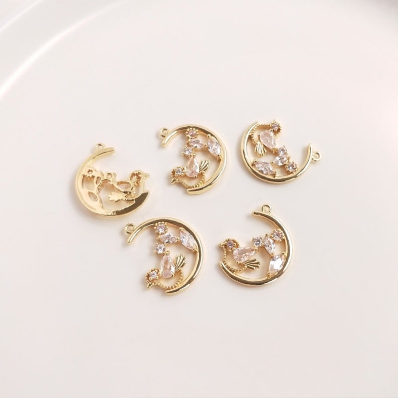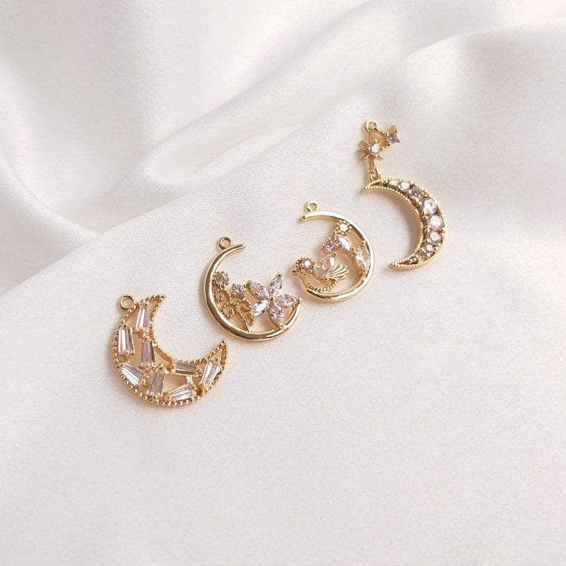 4pcs flowers, birds CZ Pave Charm, pendant Zircon Charm CZ Pave Pendant Charm, DIY pendant Jewelry Making