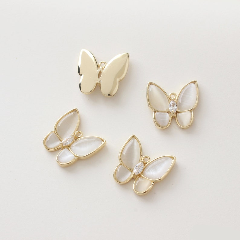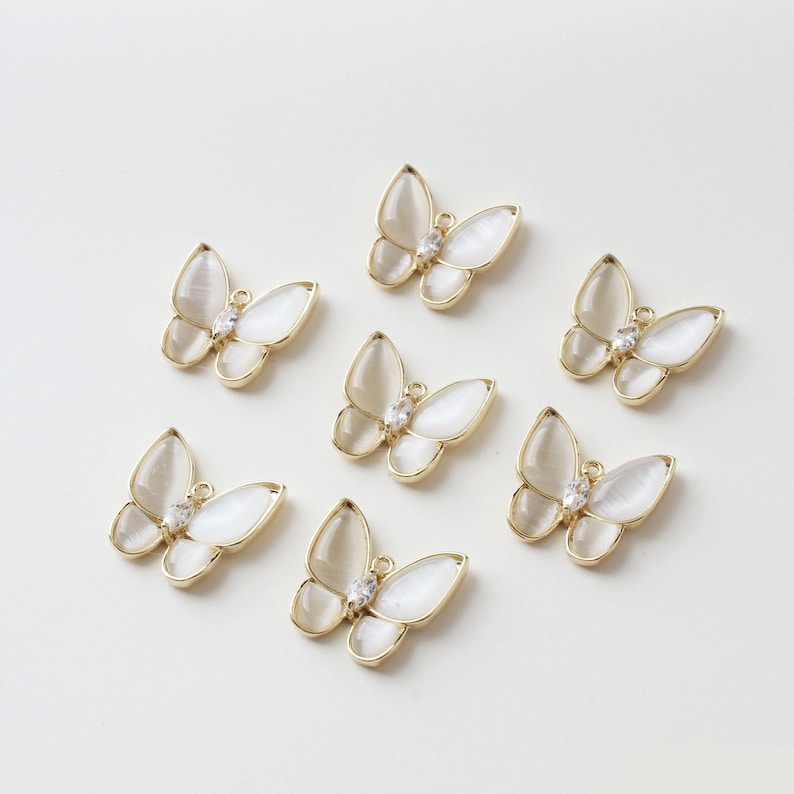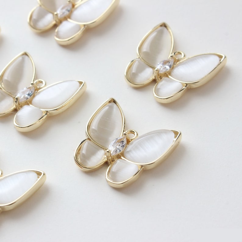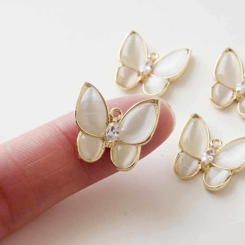 4pcs Real gold Plated Opal Butterfly Charm, Pearl White Butterfly, Pearl Butterfly Charm, Necklace Pendant, Bracelet Charm