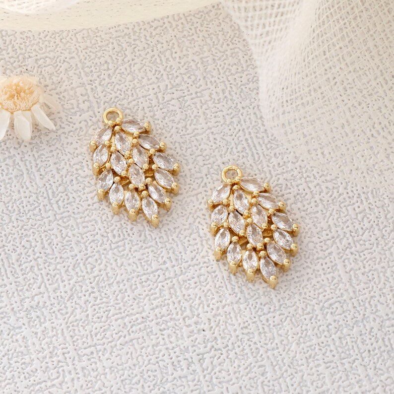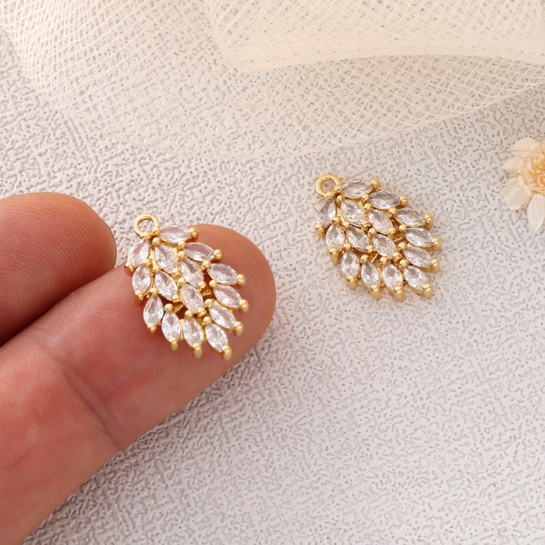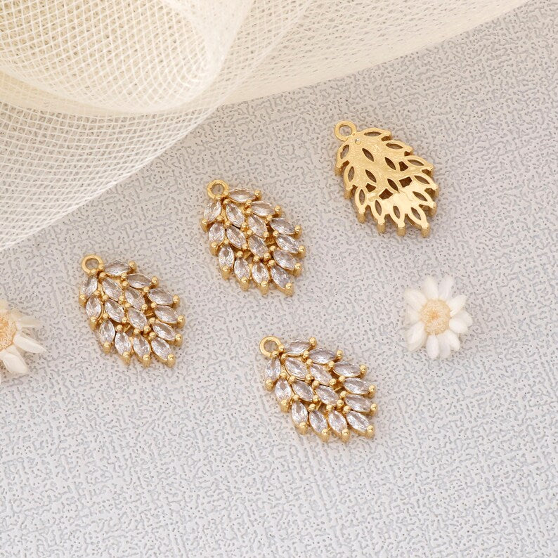 6pcs cz pave Leaves charm,bracelet necklace pendant,pave charm,gold plated over brass