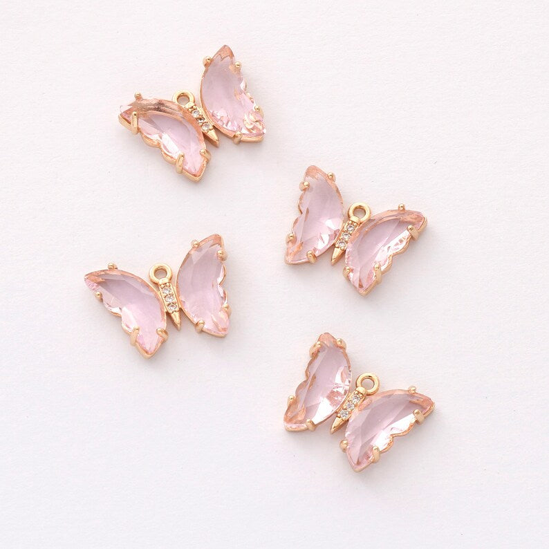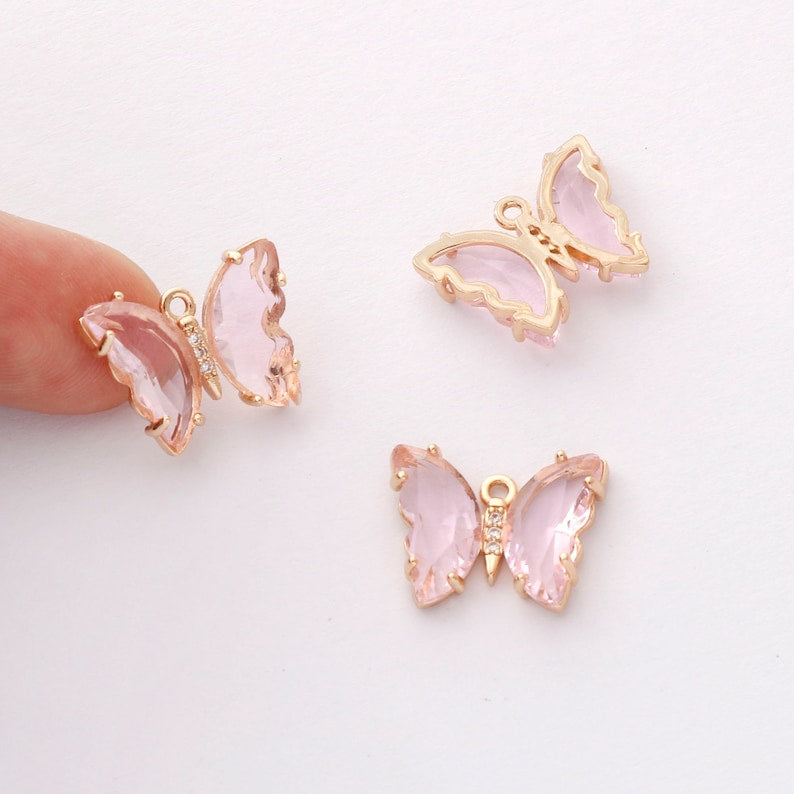 6pcs Gold Plated Crystal Butterfly Charm, Glass Butterfly Pendant, Animal Insects Finding, 15x20mm (big), Jewelry makeing, DIY material