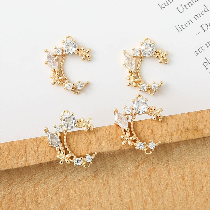 6pcs Gold Plated Moon Charm, Gold Initial Charm, Vermeil moon Pendant, Gold Moon Connector, CZ Pave Moon Charm