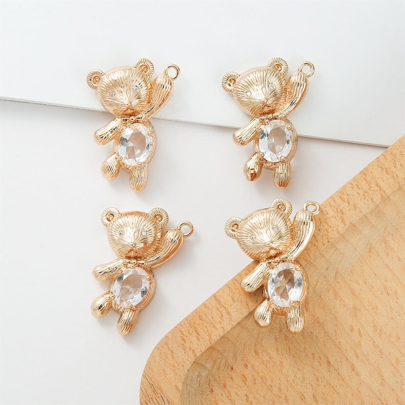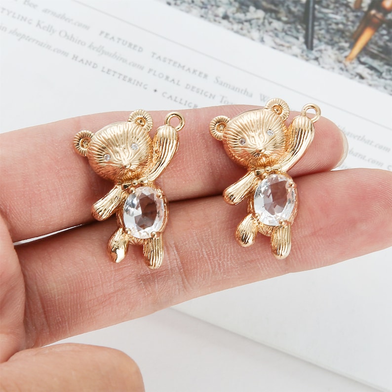 6PCS Gold Plated Play Bear Charm Pendant, cz Pave Bear Charm,Animal,Cute, Zircon Bear,Jewelry Making