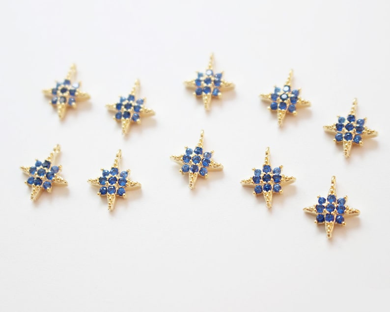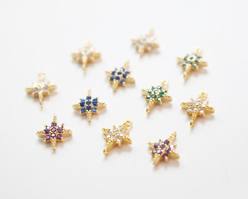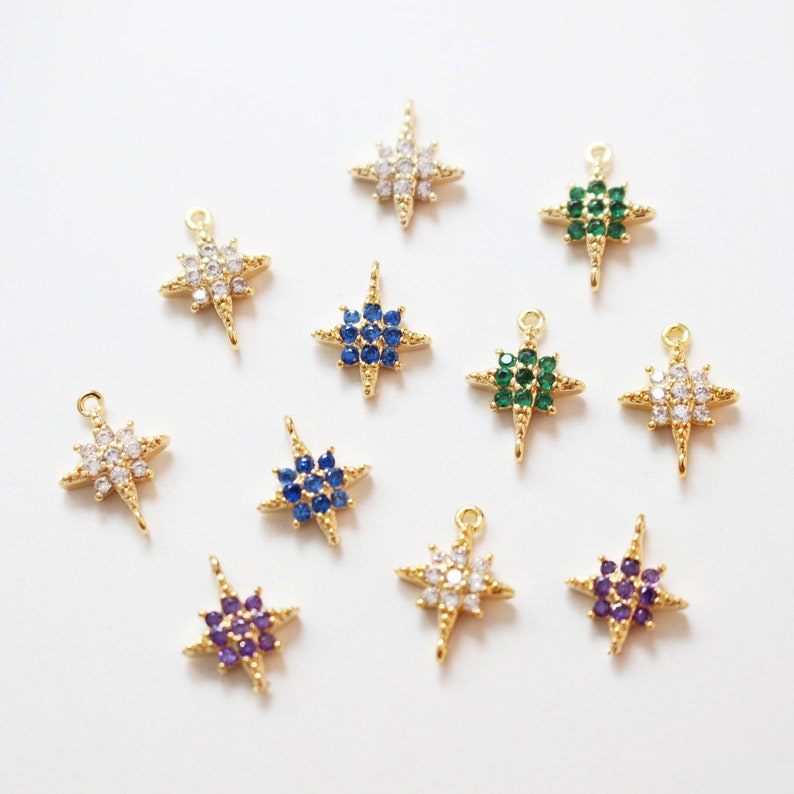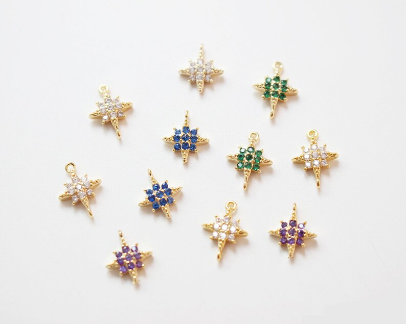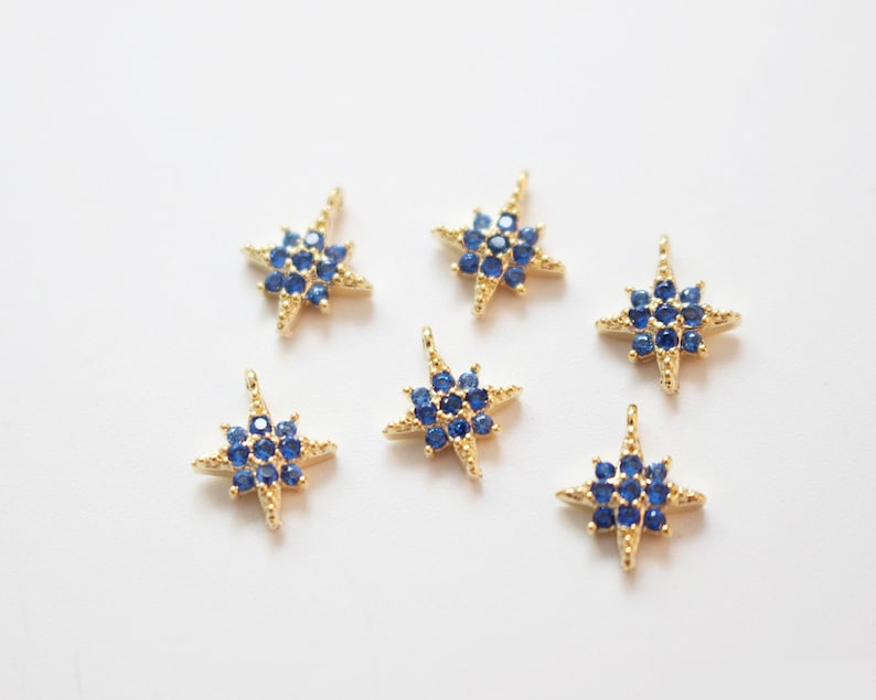 6pcs Real 18K Gold Plated Star Charm,Gold Initial Charm,Vermeil Star Pendant,Tiny Gold Star Connector,cz pave star Charm