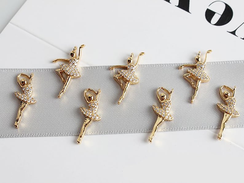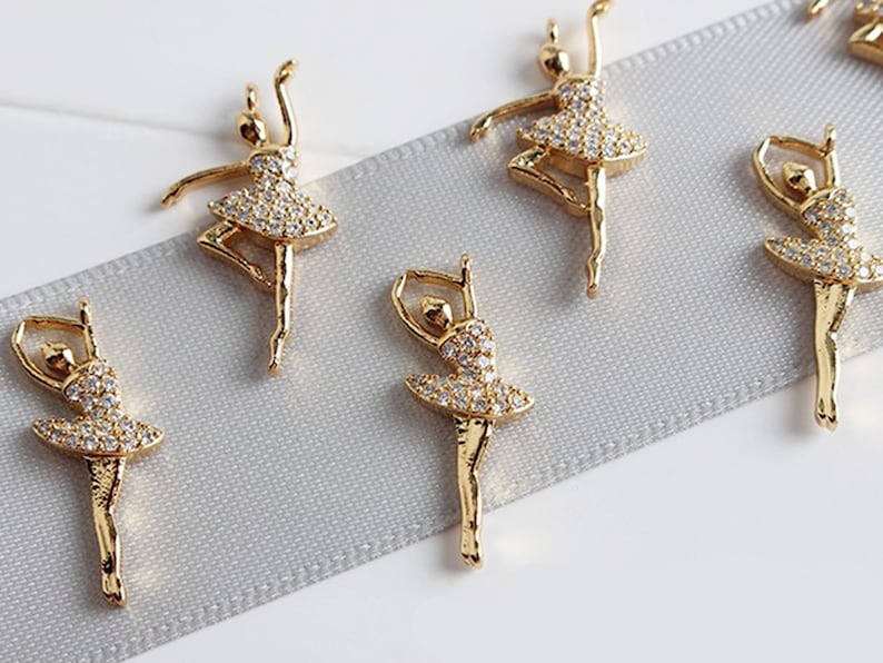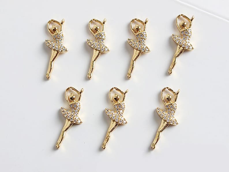 6pcs Real Gold Plated Ballet Girl Charm, CZ Pave Ballet Girl Pendant, Bracelets Finding,Trendy Charm,Gold Initial Charm