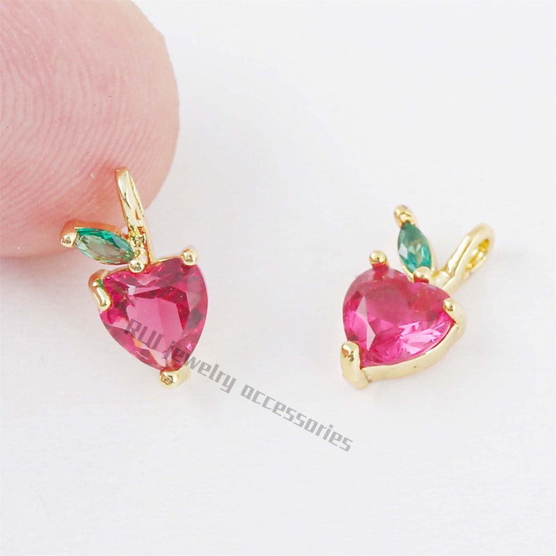 6pcs Real Gold Plated CZ Pave Apple Charm, Tiny Mini Apple, Zircon Apple Pendant, fruit Charm, Food, Pave Charm
