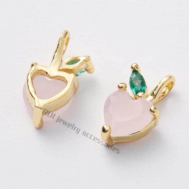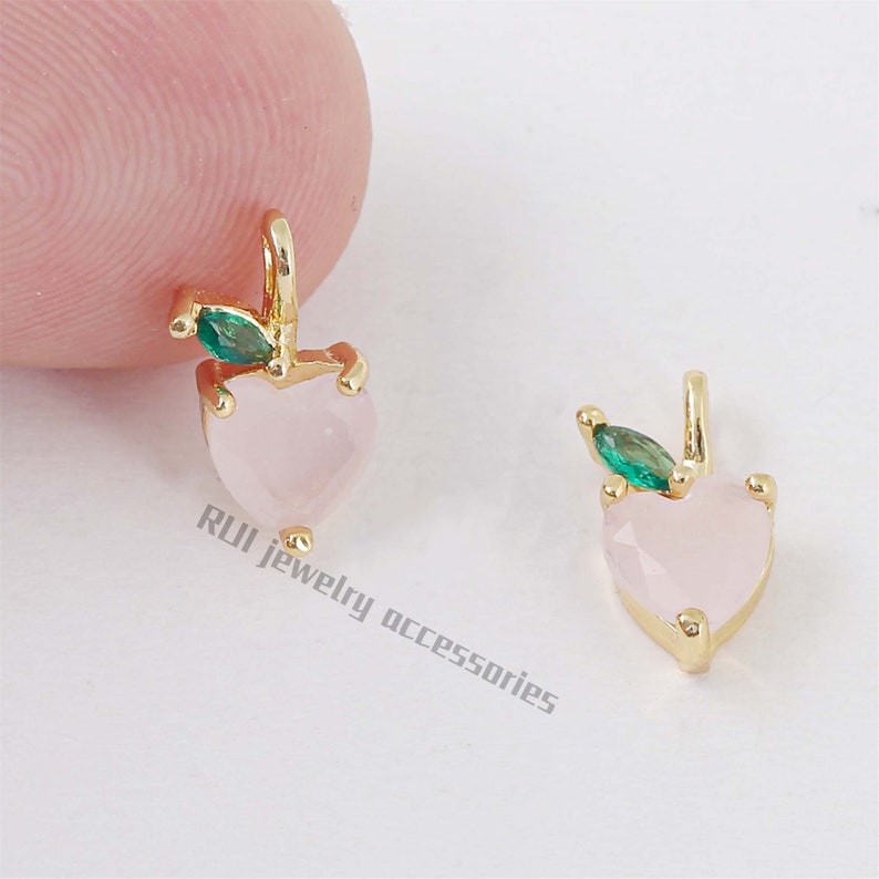 6pcs Real Gold Plated CZ Pave Peach Charm, Tiny Mini Peach, Zircon Peach Pendant, fruit Charm, Food, Pave Charm
