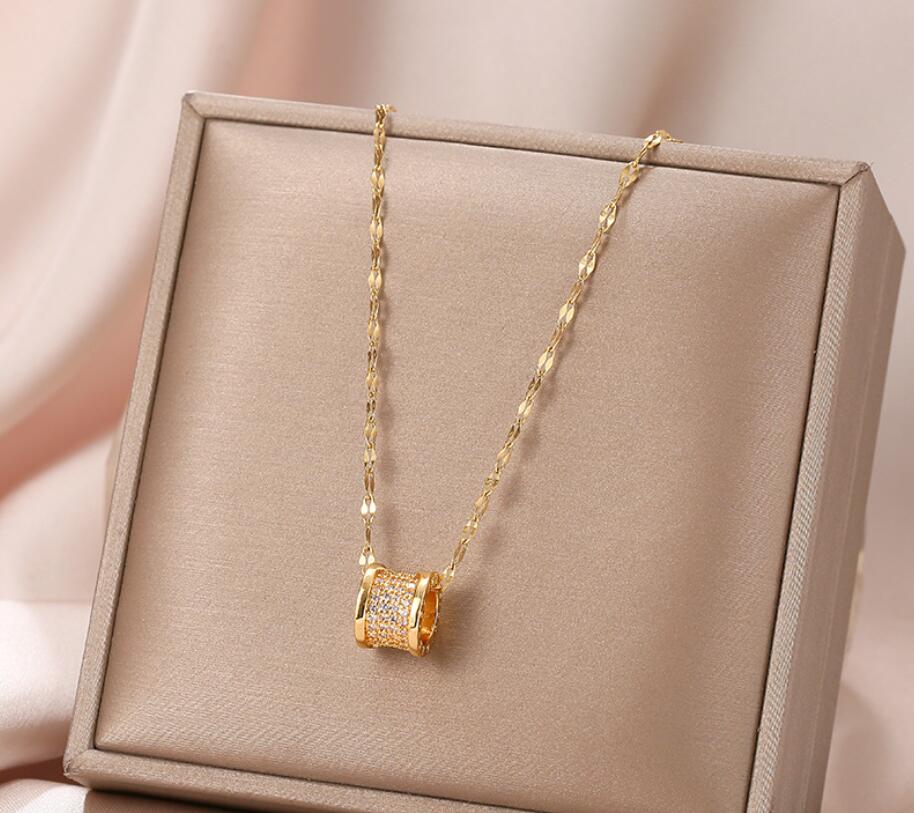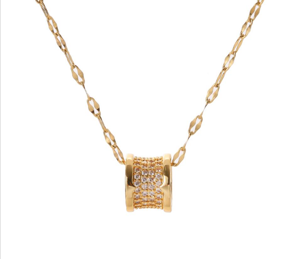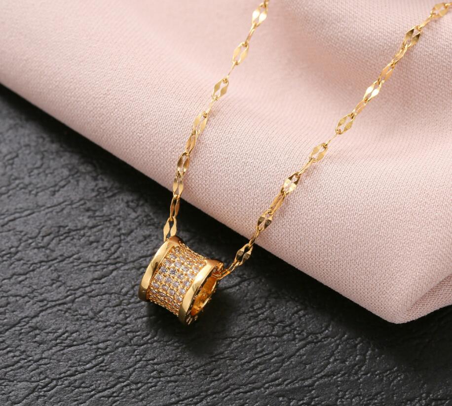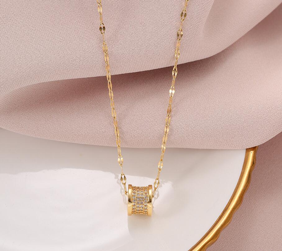Luxury gold small waist stainless steel necklace, 18k diamond pendant ,stainless steel vacuum electroplating chain all-match non-fading
