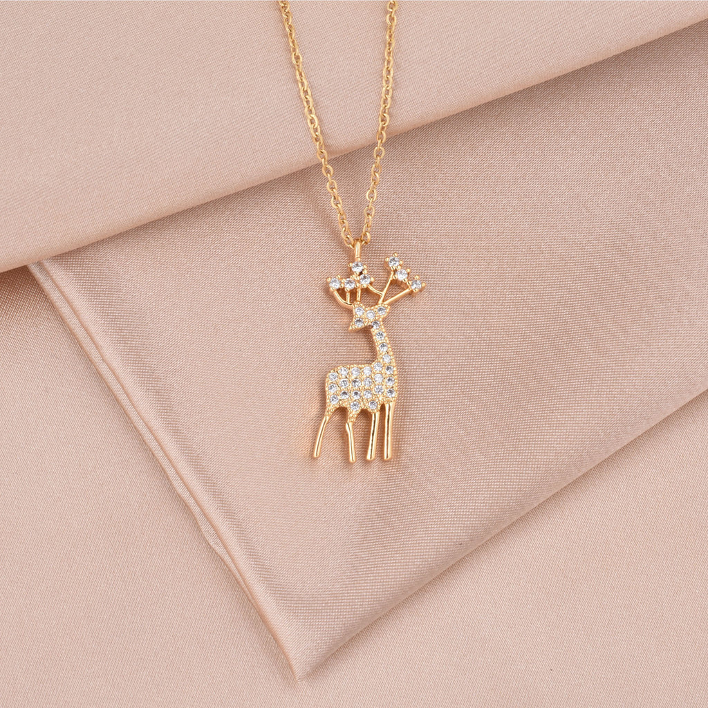Diamond Fawn Pendant Necklace, stainless steel vacuum electroplating chain all-match non-fading