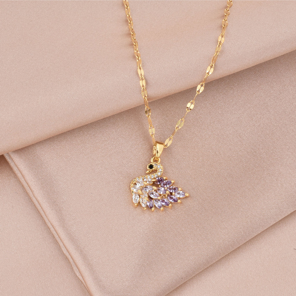 Diamond swan Pendant Necklace, stainless steel vacuum electroplating chain all-match non-fading