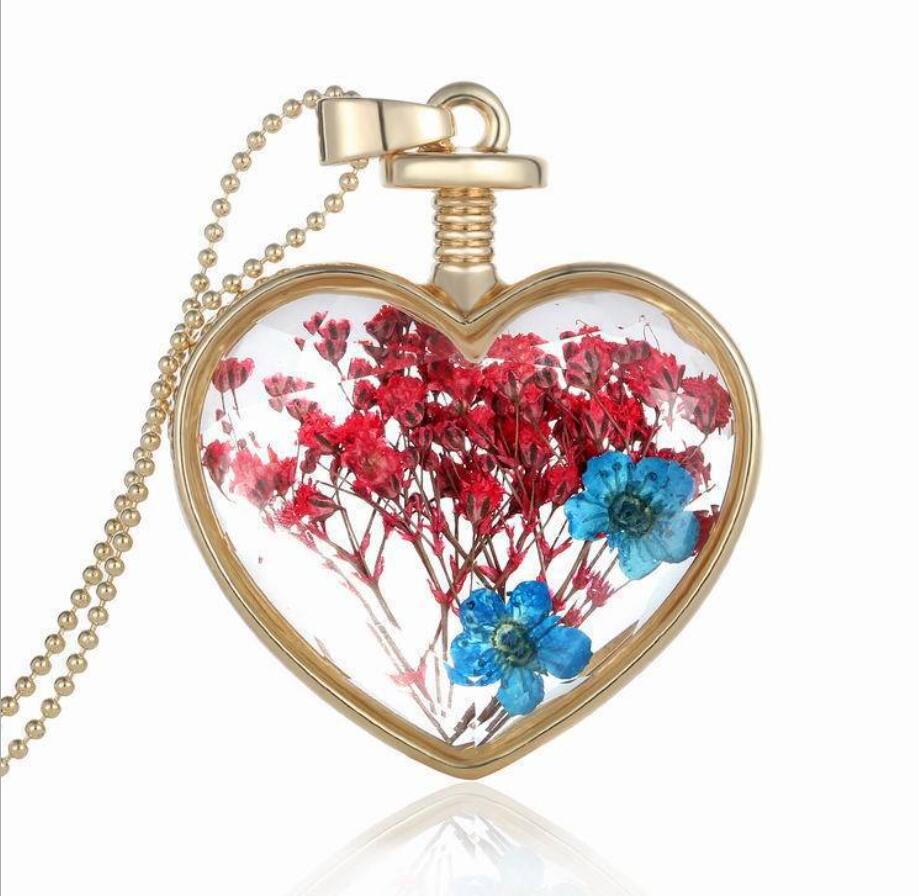 1pcs Pressed Flower Pendant Necklace - Heart-shaped gold frame