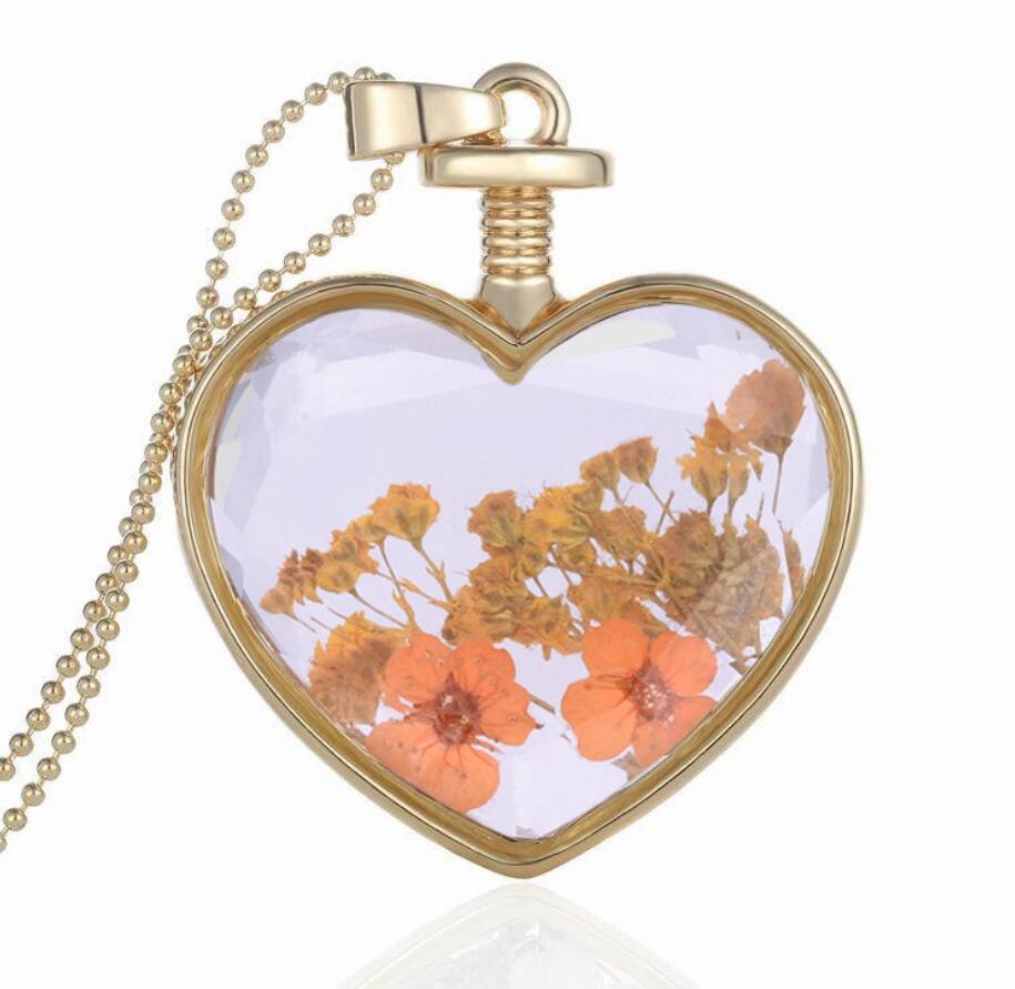 1pcs Pressed Flower Pendant Necklace - Heart-shaped gold frame